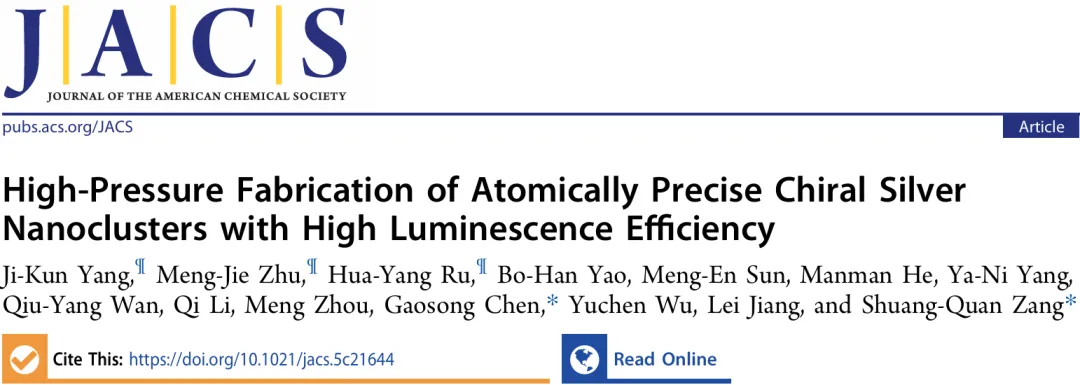 High-Pressure Fabrication of Atomically Precise Chiral SilverNanoclusters with High Luminescence Efficiency.J. Am. Chem. Soc. 2026.https://doi.org/10.1021/jacs.5c21644.