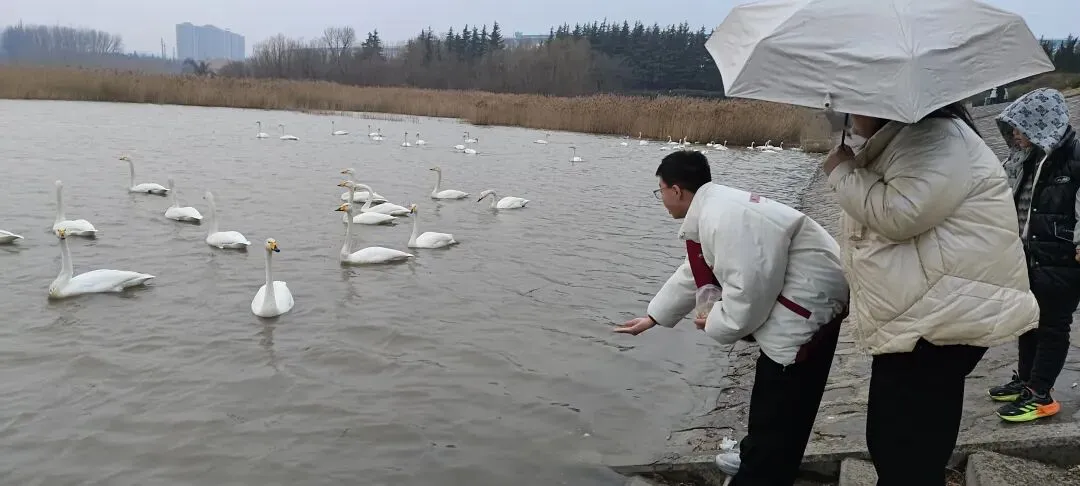 到三门峡天鹅湖景区的时候已经五六点了,开始下雨。树丛里露出一个老阿姨卖玉米,6块钱两袋玉米喂天鹅。如果是天气好,湖边的风光应该是极好的。