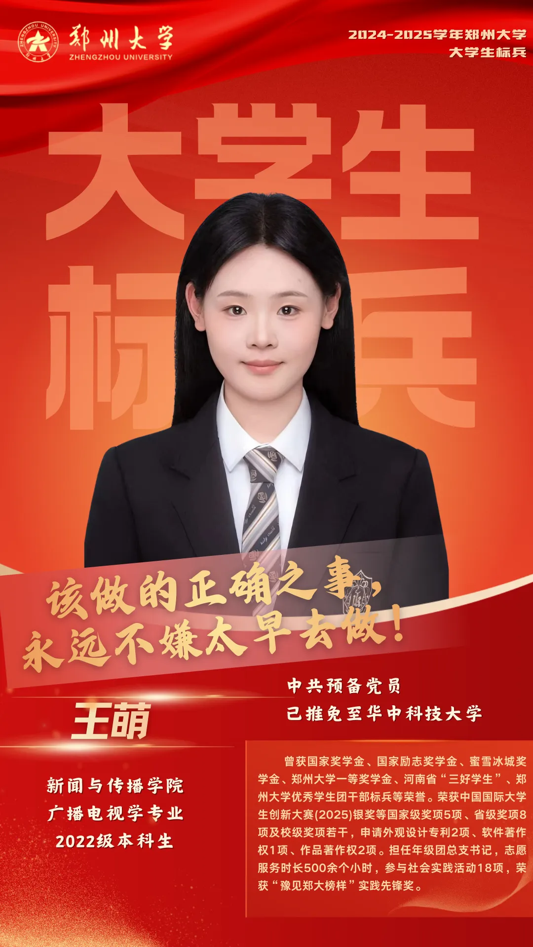 如今,这位“永动机”般的姑娘已踏上新的征程。她的背包里依然装着U盘和笔记本,只是目标从“力争第一”变成了“为行业发声”。正如她在保研面试中说的:“新闻人的笔尖该有温度,我想用专业能力让世界变得更好一点。”——这或许就是青春最好的模样:以笃行致远,用热忱担当,在时代的答卷上写下属于自己的答案。