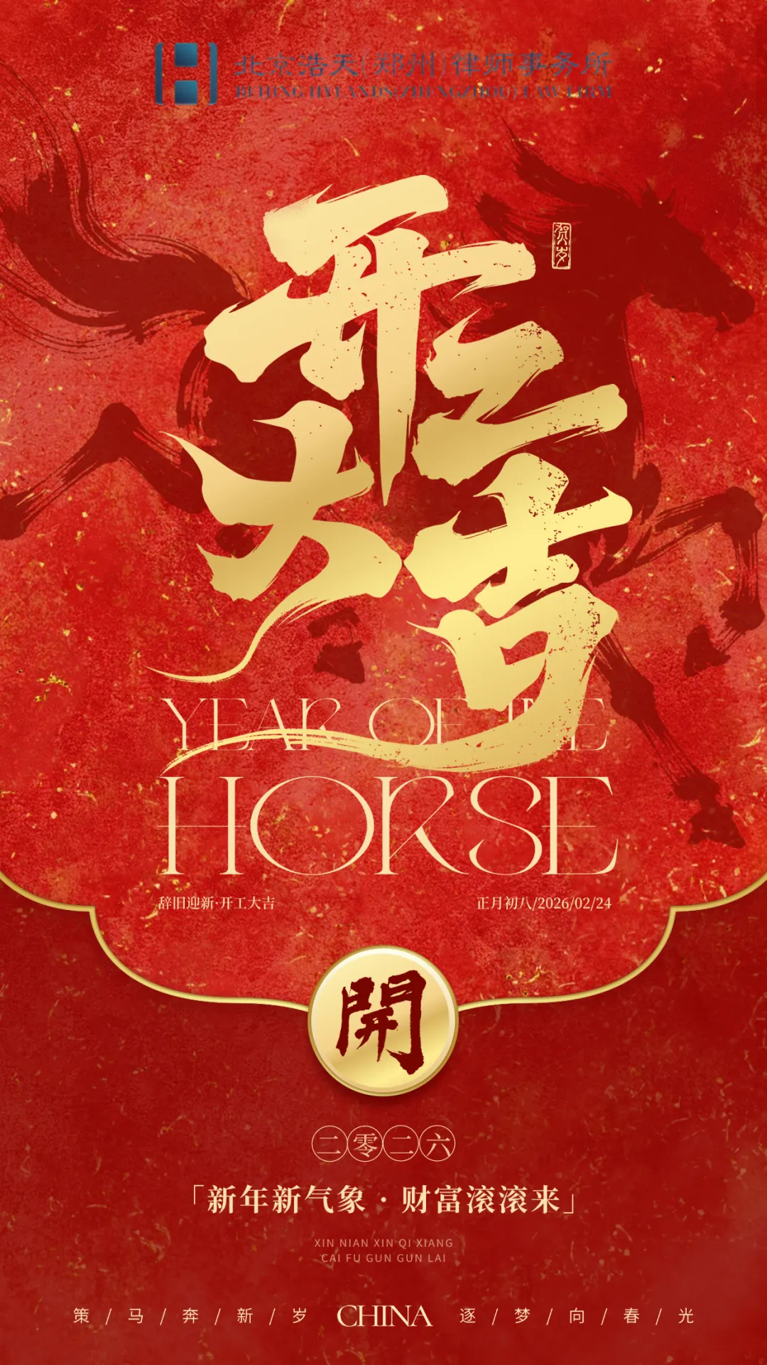 龙马精神齐聚财,新年鸿运启新篇!告别新春佳节的团圆与休憩,承载着希望与憧憬,2 月 24 日(正月初八),北京浩天(郑州)律师事务所正式开工,全体同仁满载热忱,正式重返工作岗位,开启2026马年新征程。