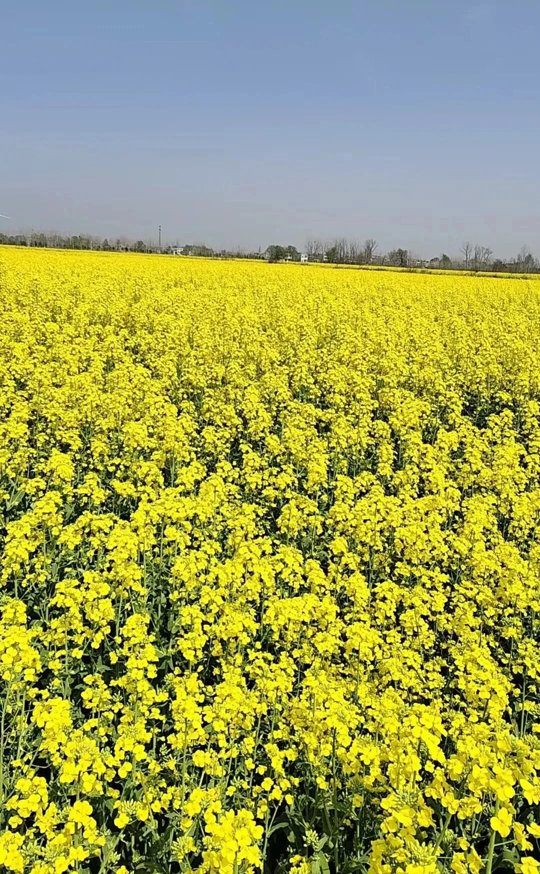 这是此行的高潮。江汉平原的油菜花,胜在平坦和无际。没有山的遮挡,花海直接铺到了天边。