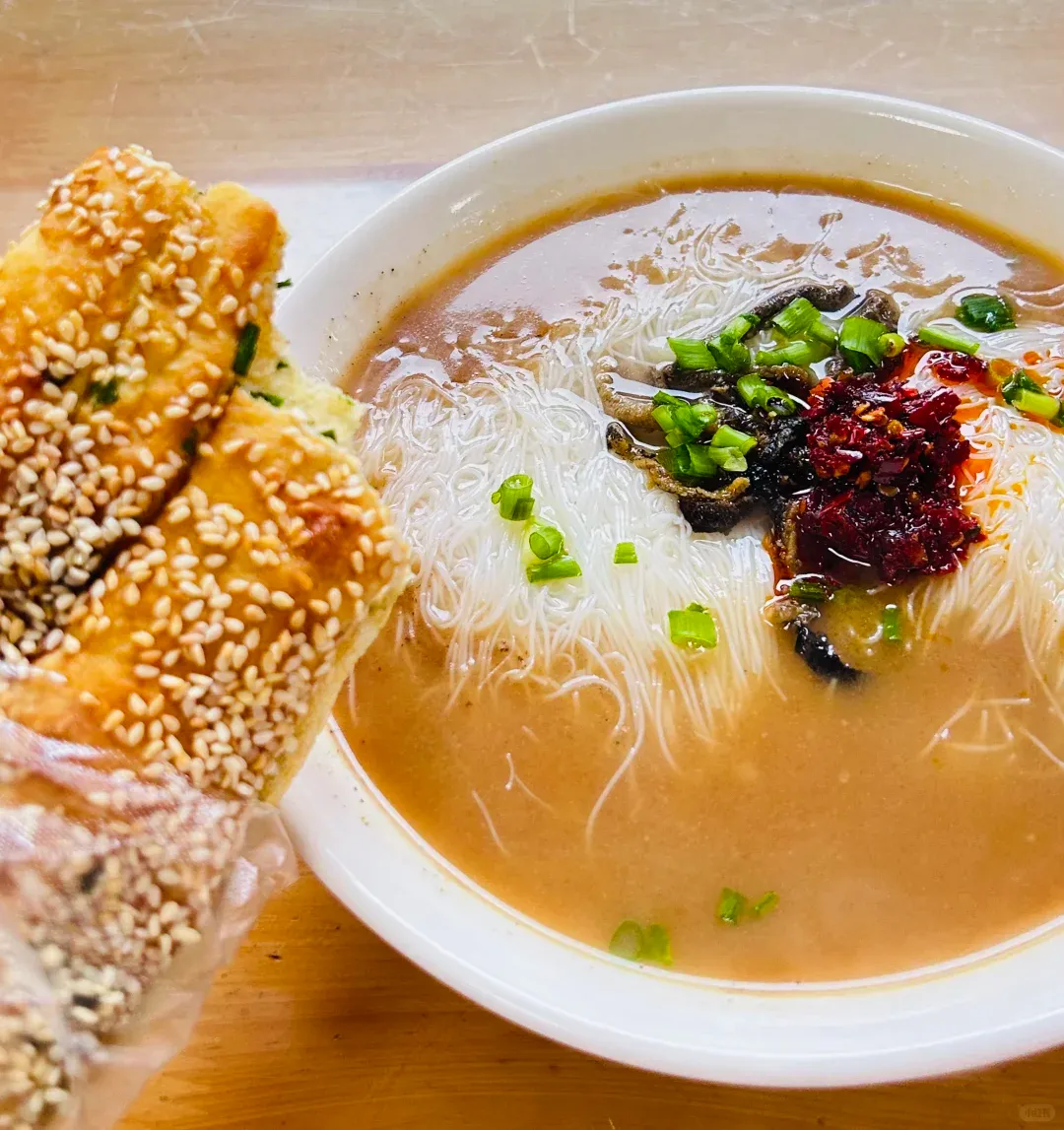 临走前,再去吃一碗黄潭米粉。 那层厚厚的鳝鱼骨熬成的“糊”,是天门人对鲜味的终极理解。配上一根油条蘸着吃,绝配。