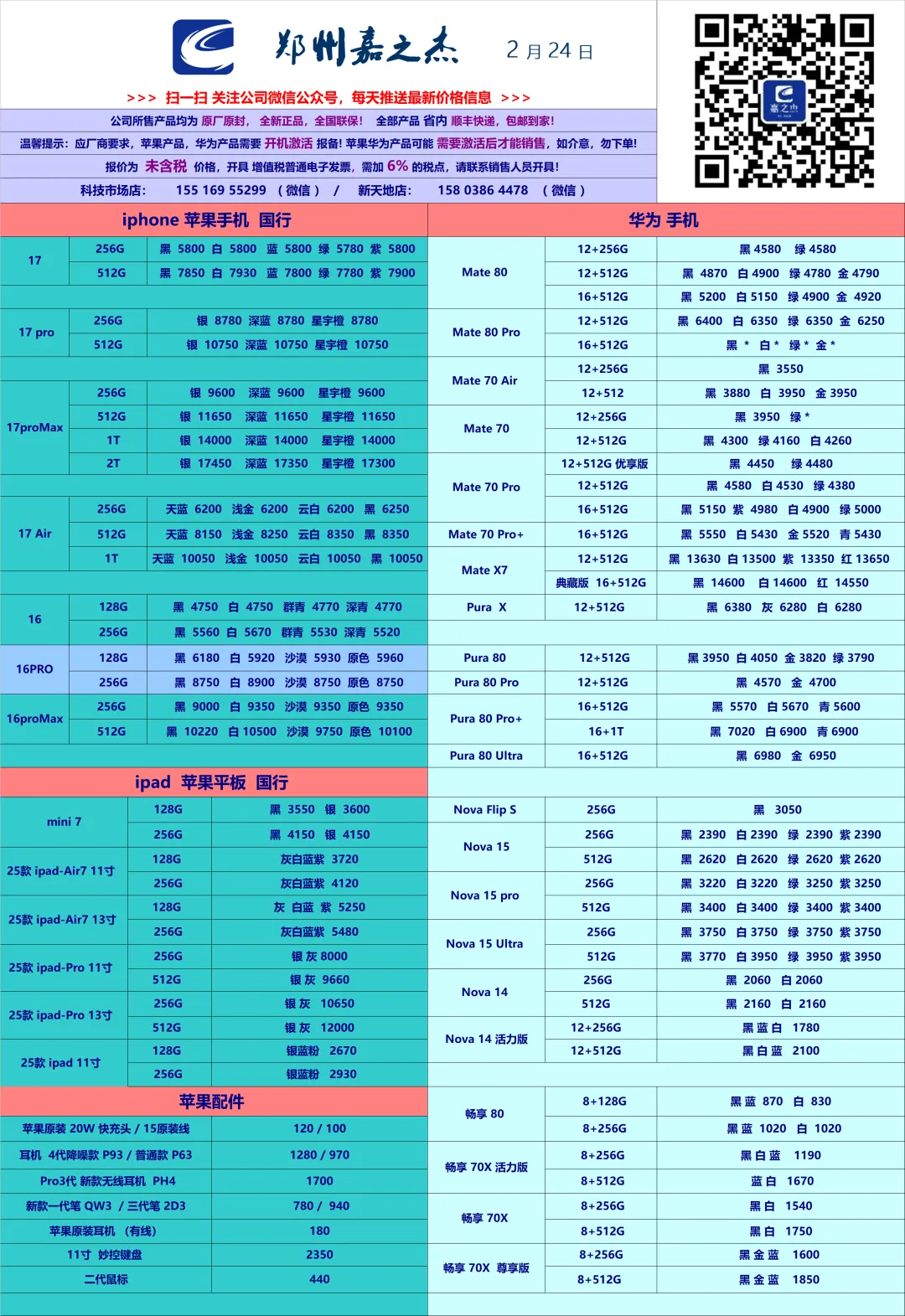>郑州嘉之杰2月24日价格表