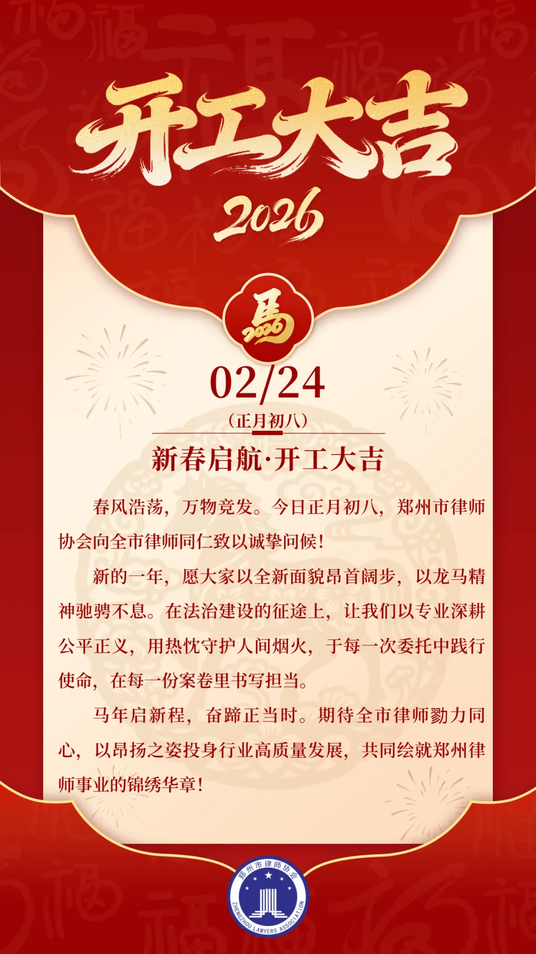 >郑州市律师协会马年正月初八开工大吉!