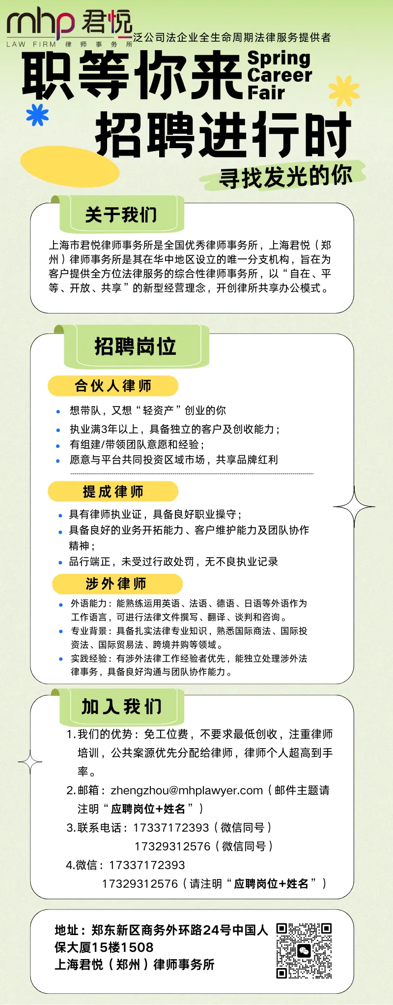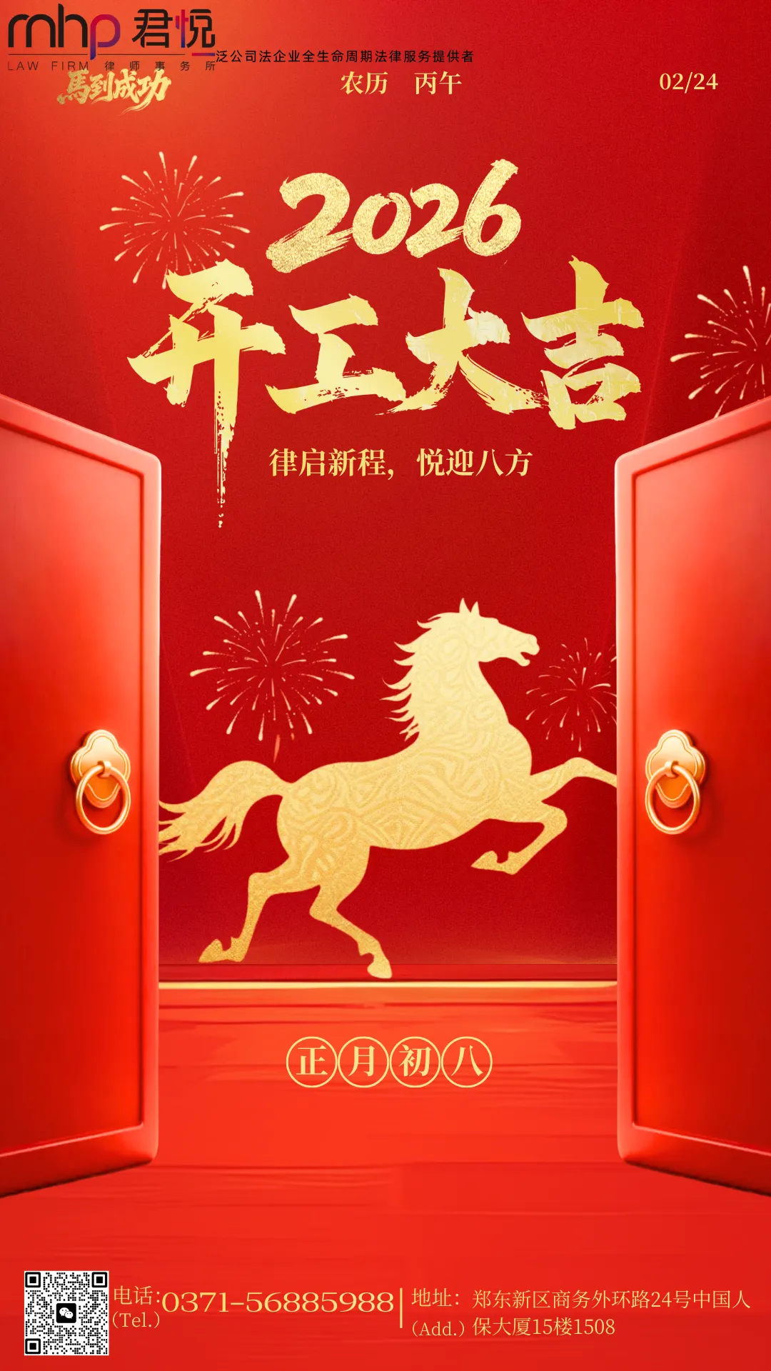 律启新程,悦迎八方。上海君悦(郑州)律师事务所正月初八正式开工!新的一年,我们将继续以法为剑,笃行致远,守护公平正义,护航每一份托付。祝大家开工大吉,万事顺遂!