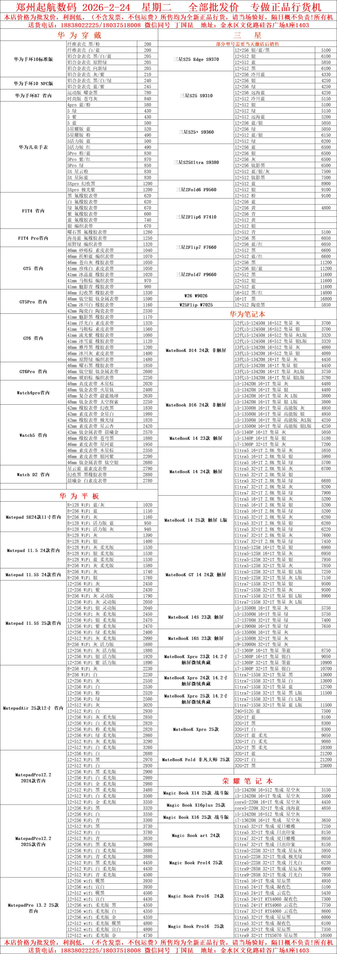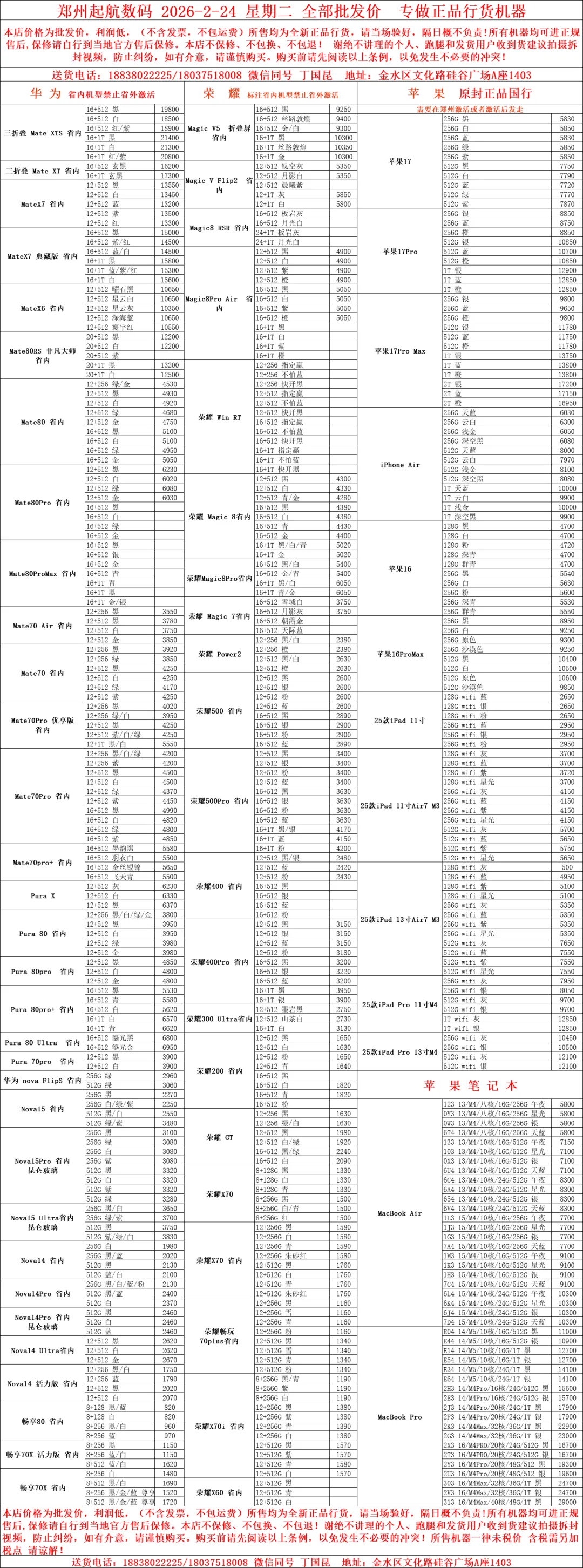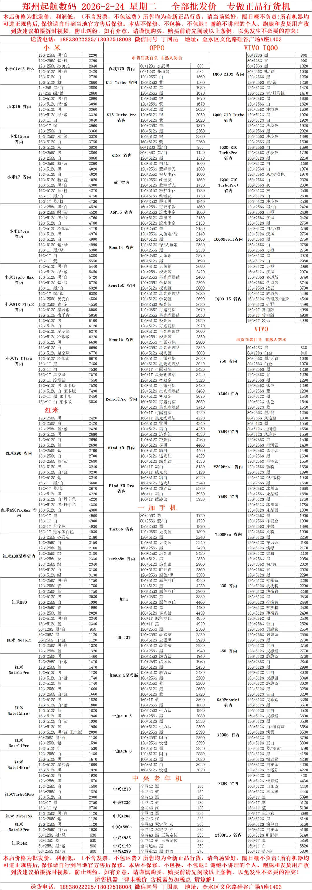 每天手机最新行情 请关注微信每日推送微信公众号:郑州起航数码公司地址:郑州市金水区文化路82号硅谷广场A座1403