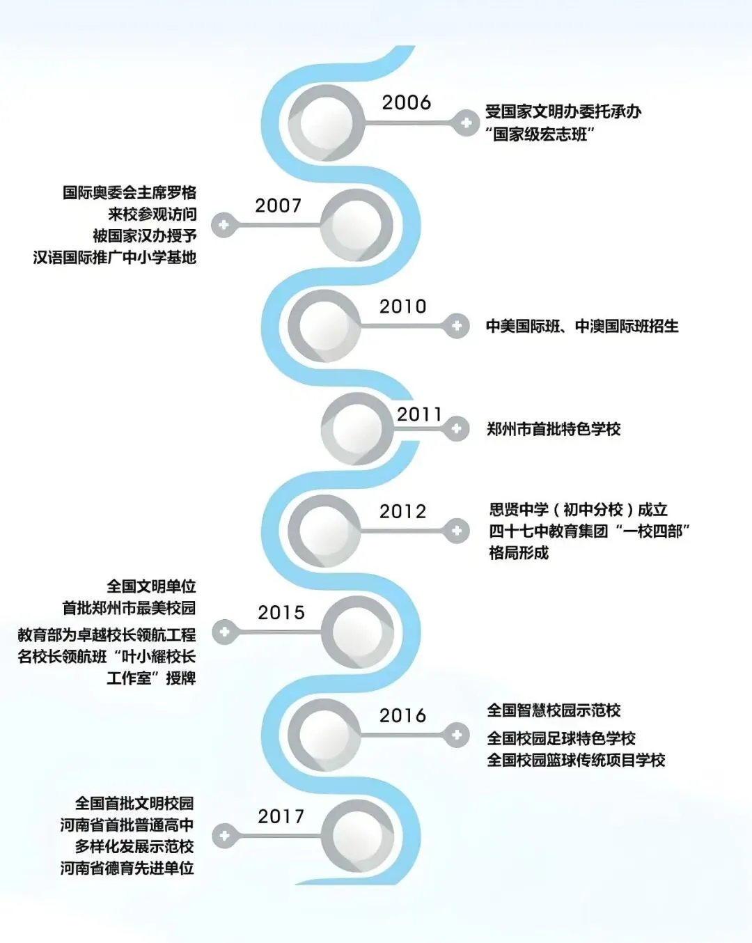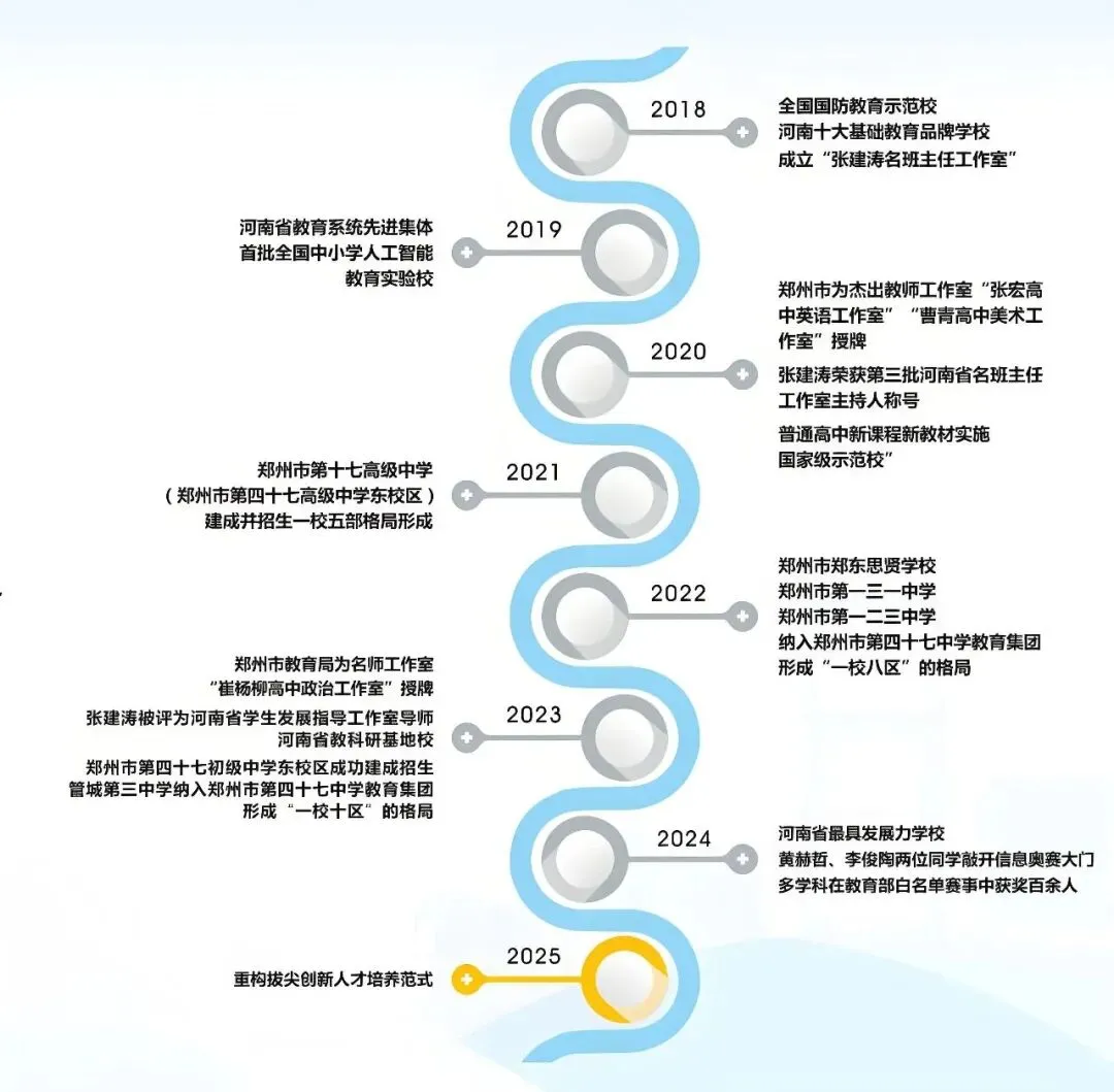 我们来看郑州市第47中集团校的发展历程: