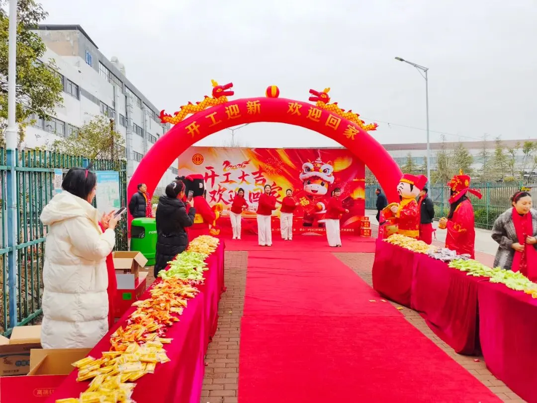 活力满满的开工舞蹈点燃全场,振奋昂扬的敲鼓表演振奋人心,憨态可掬的迎新财神笑意盈盈,为每一位返岗的家人送上了马年最真挚的祝福与期许。欢声笑语萦绕全场,每一处角落都洋溢着团圆返工的喜悦与奋进向上的朝气,现场气氛热闹非凡。