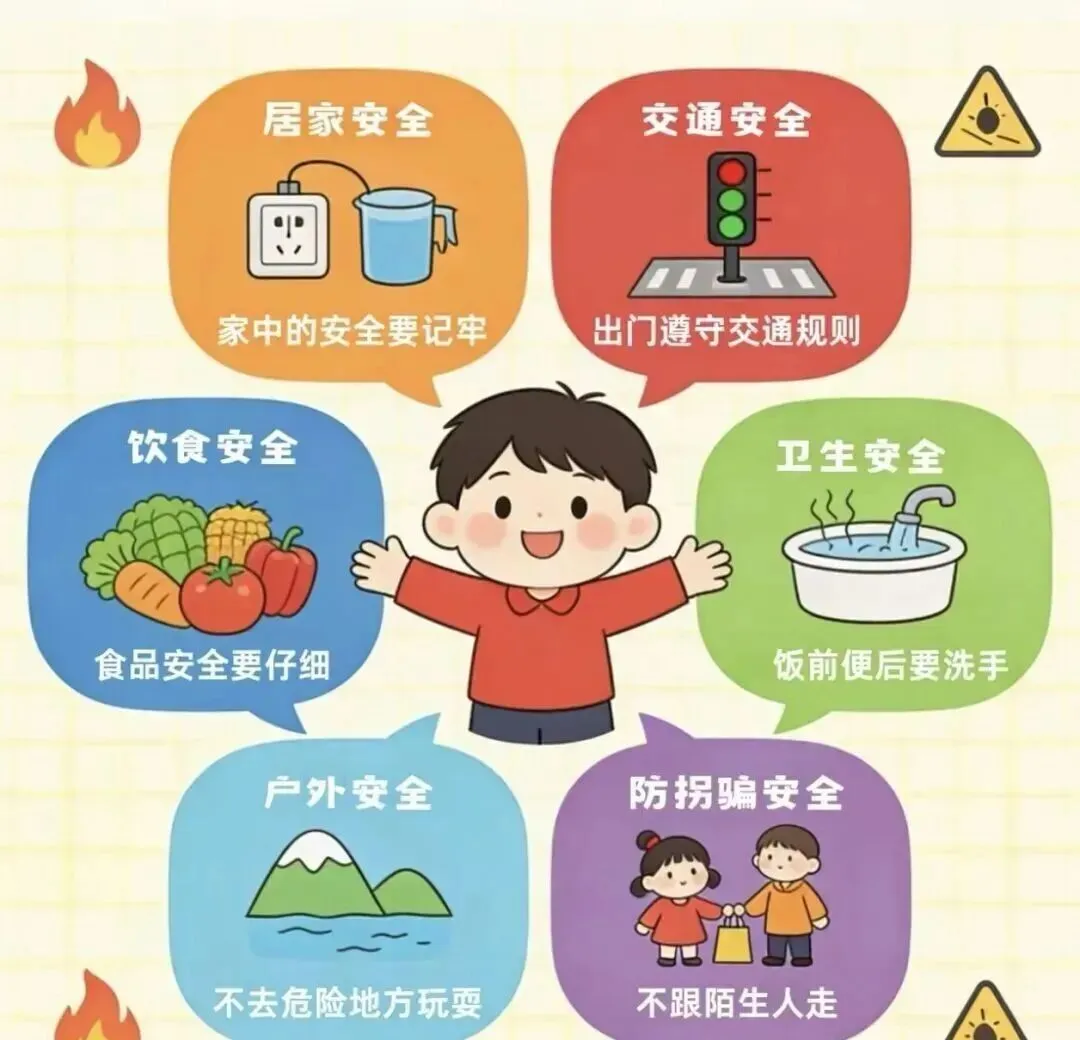 开学诸事,安全第一。孩子来园前,请家长仔细检查孩子的书包和口袋,是否有尖锐细小的危险品。在家加强对孩子的安全教育,教育孩子学会必要的自我保护方法,如不触摸插座开关、不爬高、不随便乱吃东西、不跟陌生人走等。同时要让孩子知道自己爸爸妈妈的名字、手机号码和家庭地址。