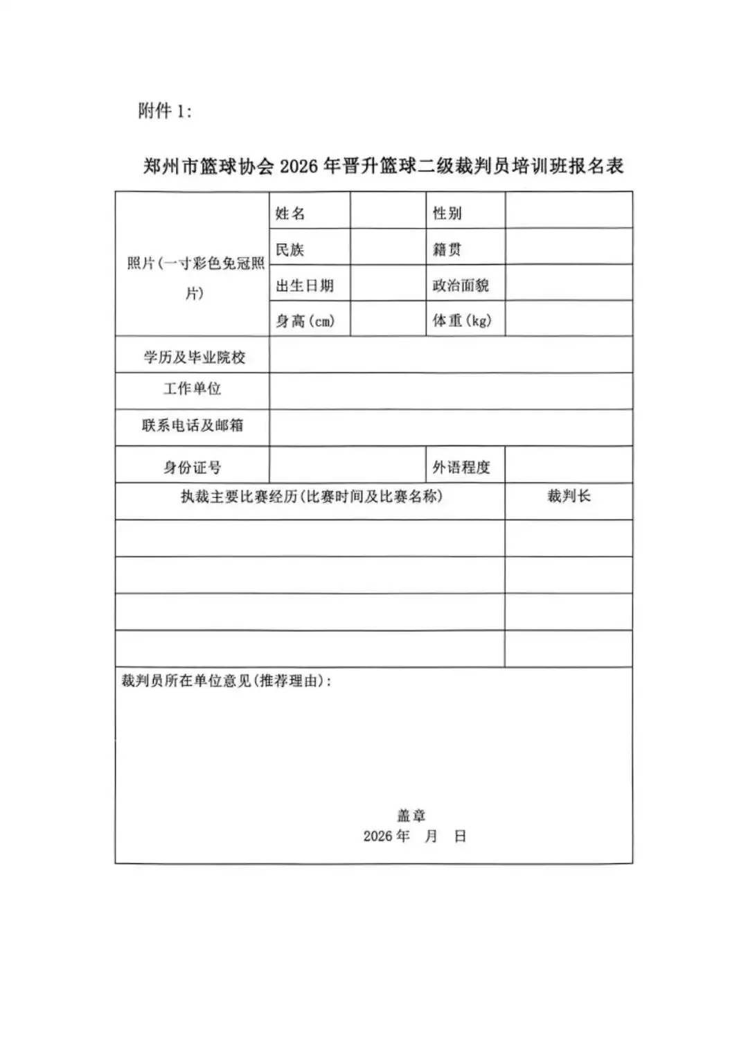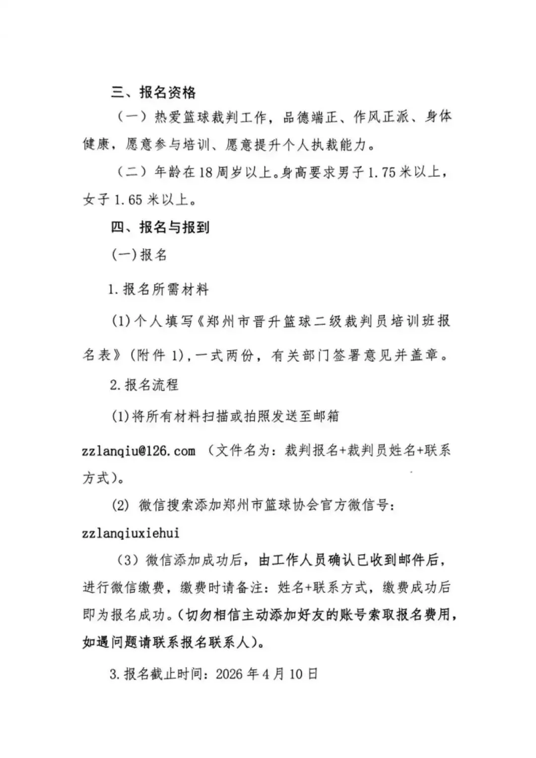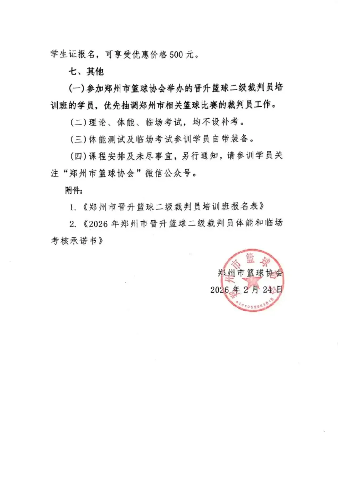 裁判培训 | 关于举办2026年郑州市晋升篮球二级裁判员培训班的通知