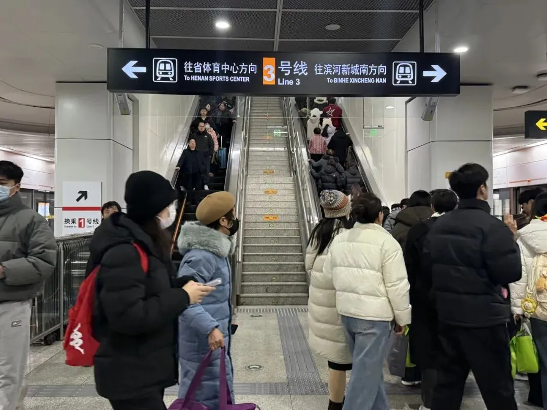 这个春节假期(含节前一天),3号线累计安全运送乘客114.61万人次,日均客运量11.46万人次,较去年同期增长7%,3号线排名前三的热门车站分别为二七广场站(进站量11.12万人次)、郑州文庙站(进站量5.36万人次)、人民公园站(进站量4.31万人次),列车正点率100%,列车运行图兑现率100%。其中,从2月19日(正月初三)开始,3号线客运量逐步回升,受返程客流影响,春节假期单日最高客流出现在最后一日(2月23日),达到15.88万人次。