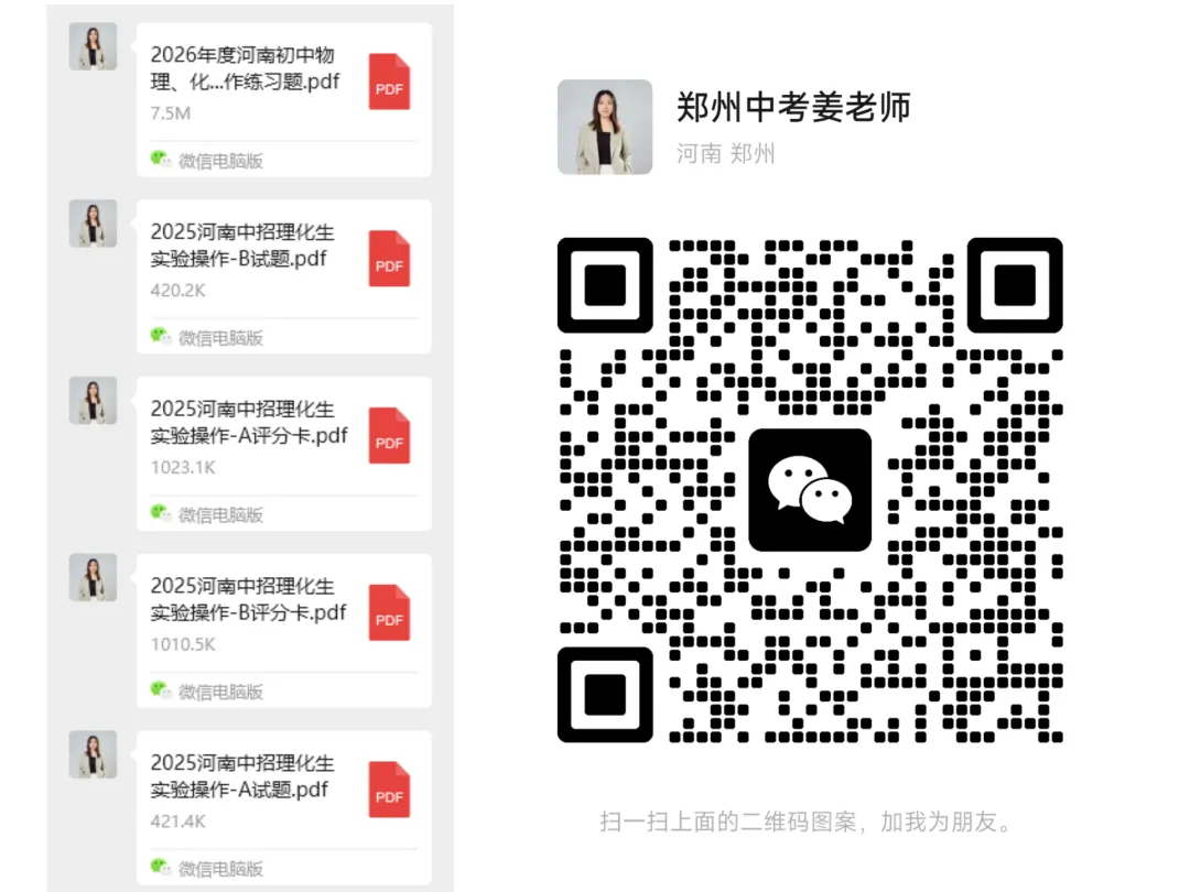 郑州市将按有关要求抽取2个试题单元作为2026年郑州市中招理化生实验操作考试试题。