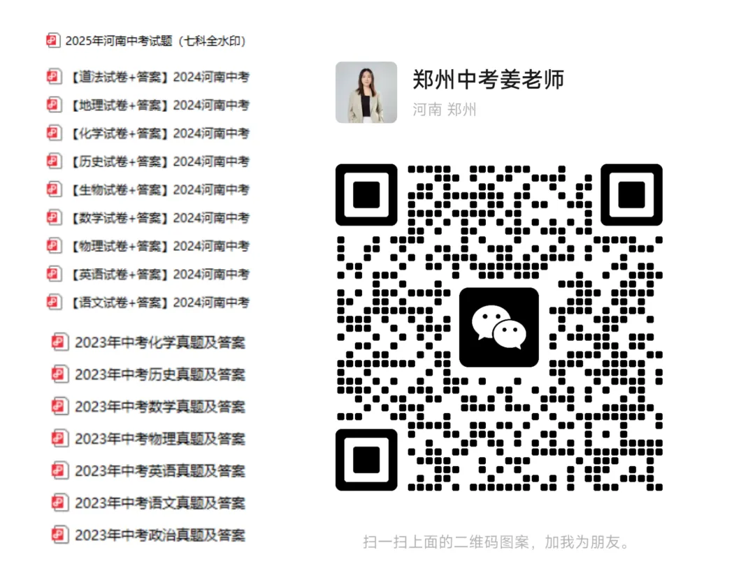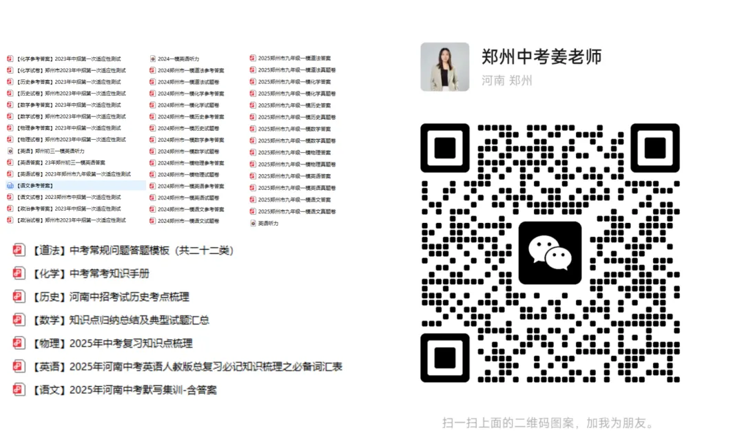 备考资料:近3年一模真题+7科一轮复习资料(扫码加我领取)
