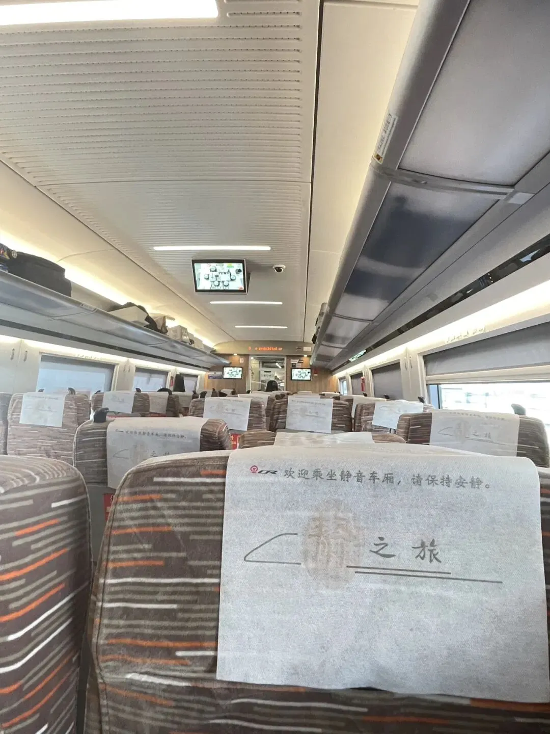 插播个小曲:这趟列车幸运地坐到了静音车厢。之前看V姐坐高铁就想选静音车厢,但静音车厢只有二等座,V姐就很狐疑,不知道真的能静音吗?