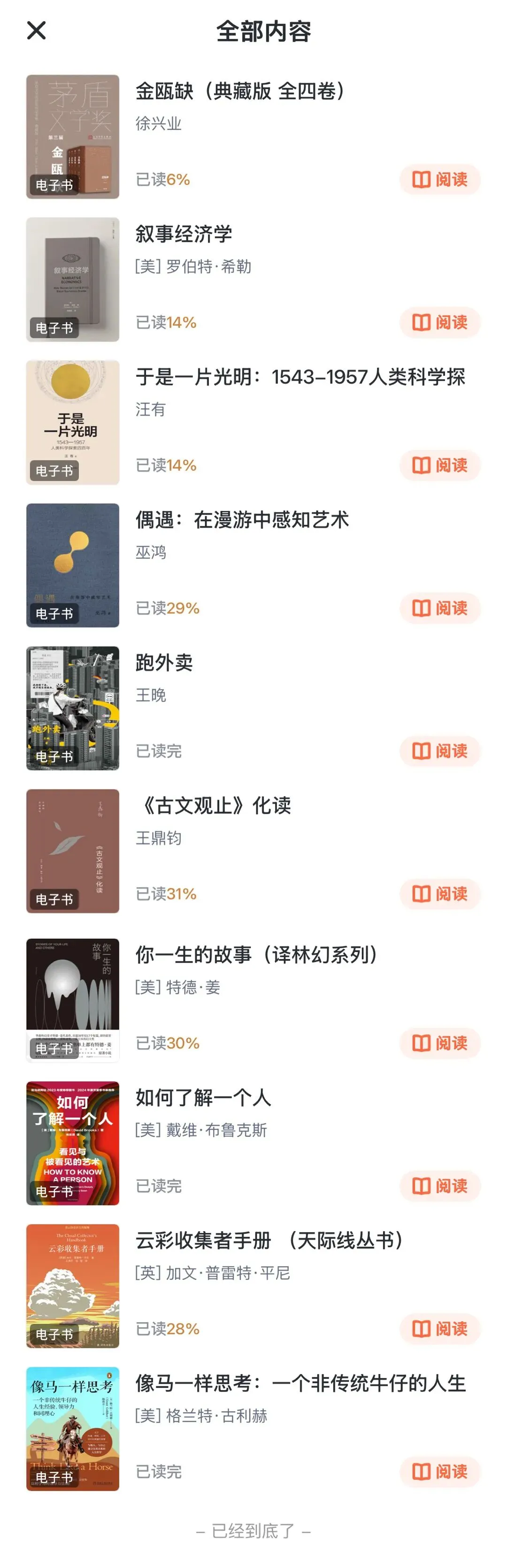 根据完成进度很明显可窥出阅读喜好,但主要问题是投其所好的书单不多,要不完成度可以更闪耀一些。