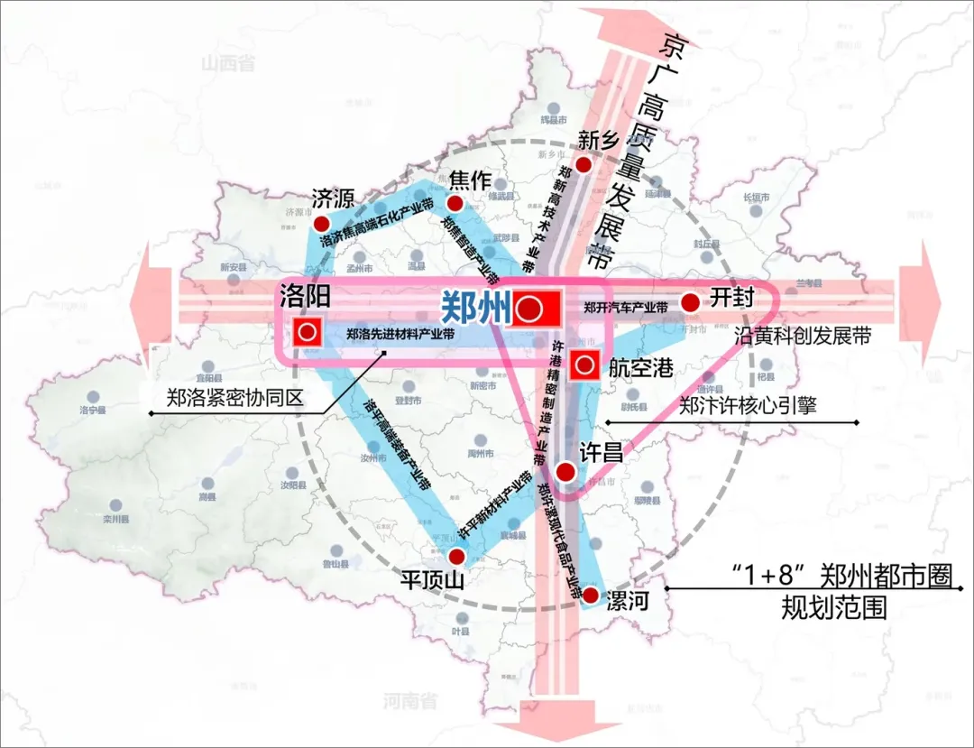 郑州都市圈核心城市和产业带布局图©网络 仅供参考