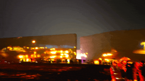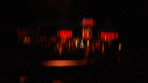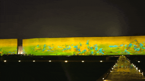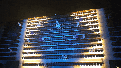 绕过十米高的入口院墙,真正进入戏剧的世界,脚下的棋盘晚上会变色。