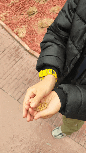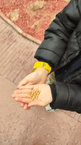 咚咚张嘴作势要吃😁,这个还得磨成面,蒸成馒头才能吃~