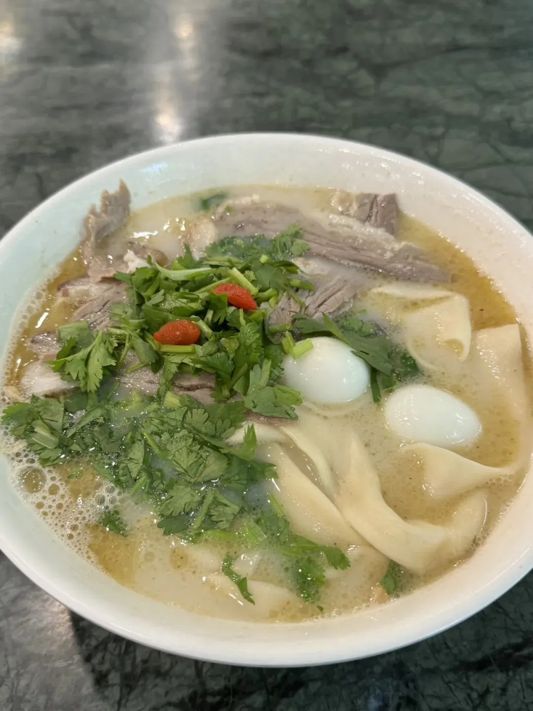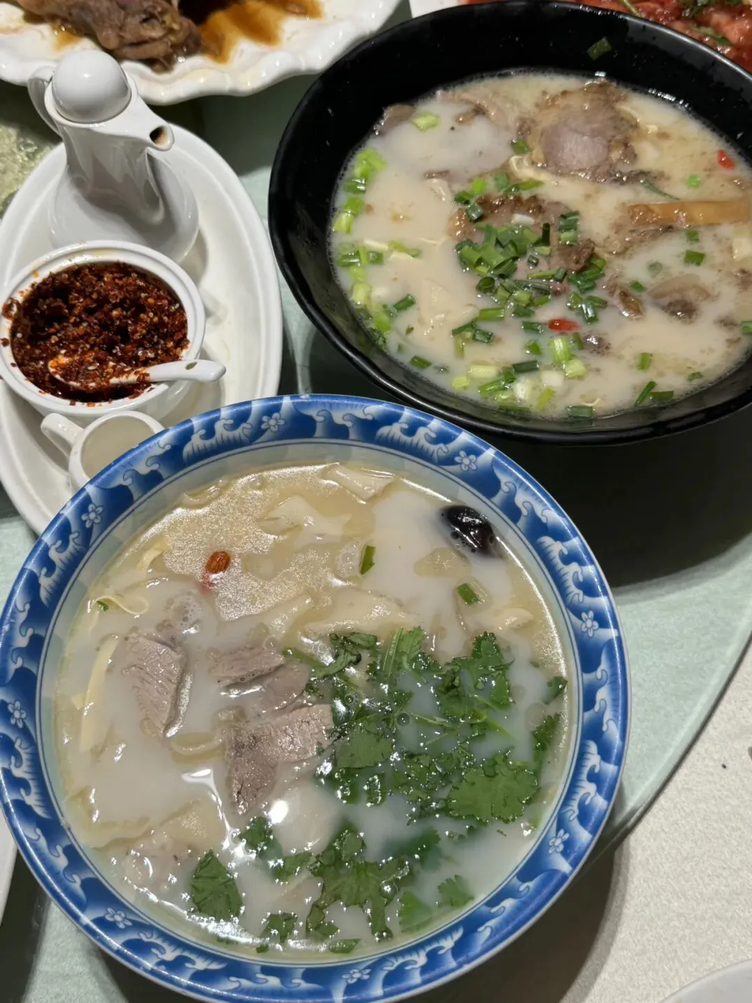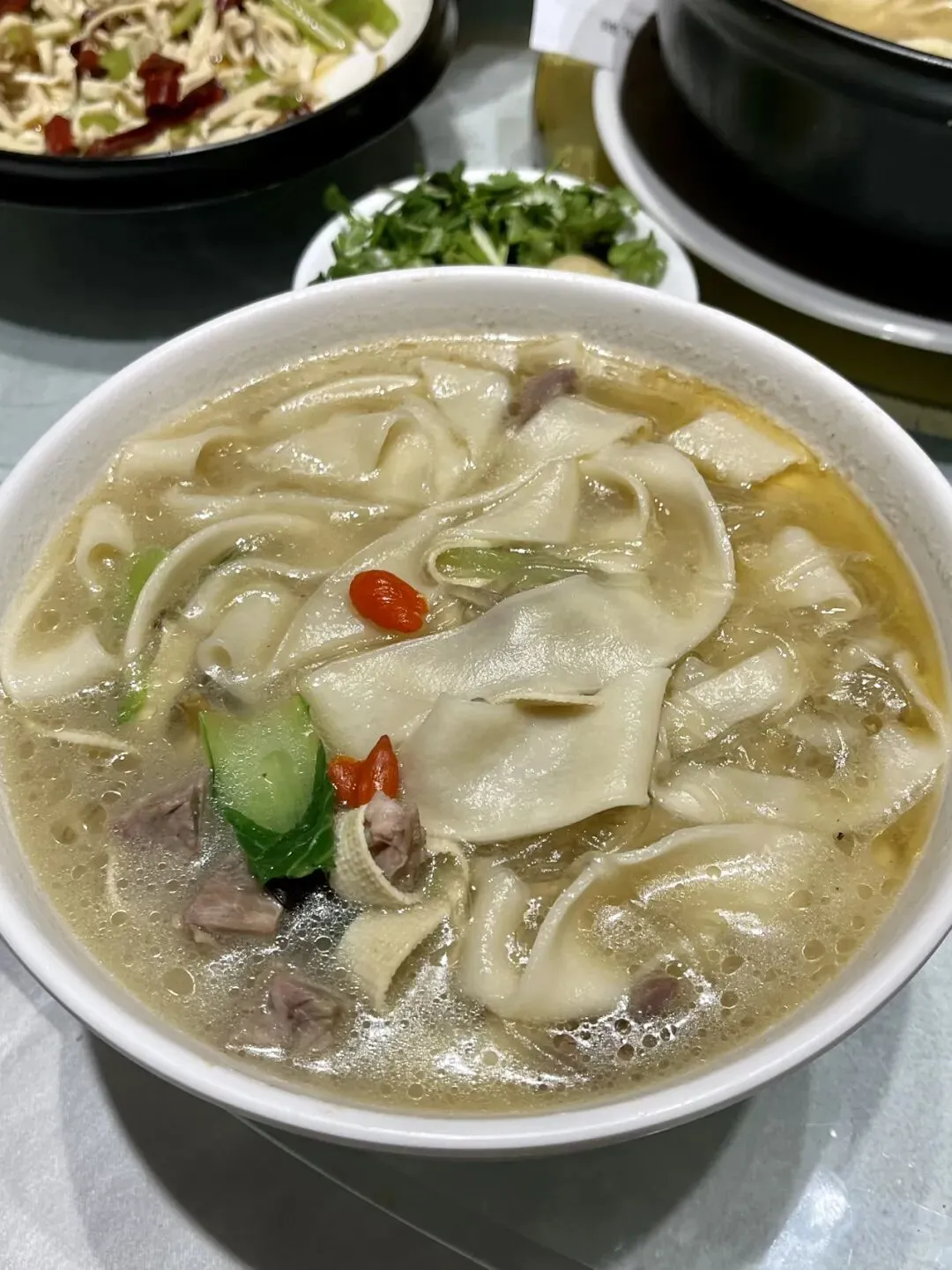 郑州的羊肉烩面就有很多流派,如汤色奶白的滋补烩面,汤底加入枸杞、当归等中药材,具有温补功效,口味温和,适合养生。代表门店有惠丰源、景祥、聚奎苑等