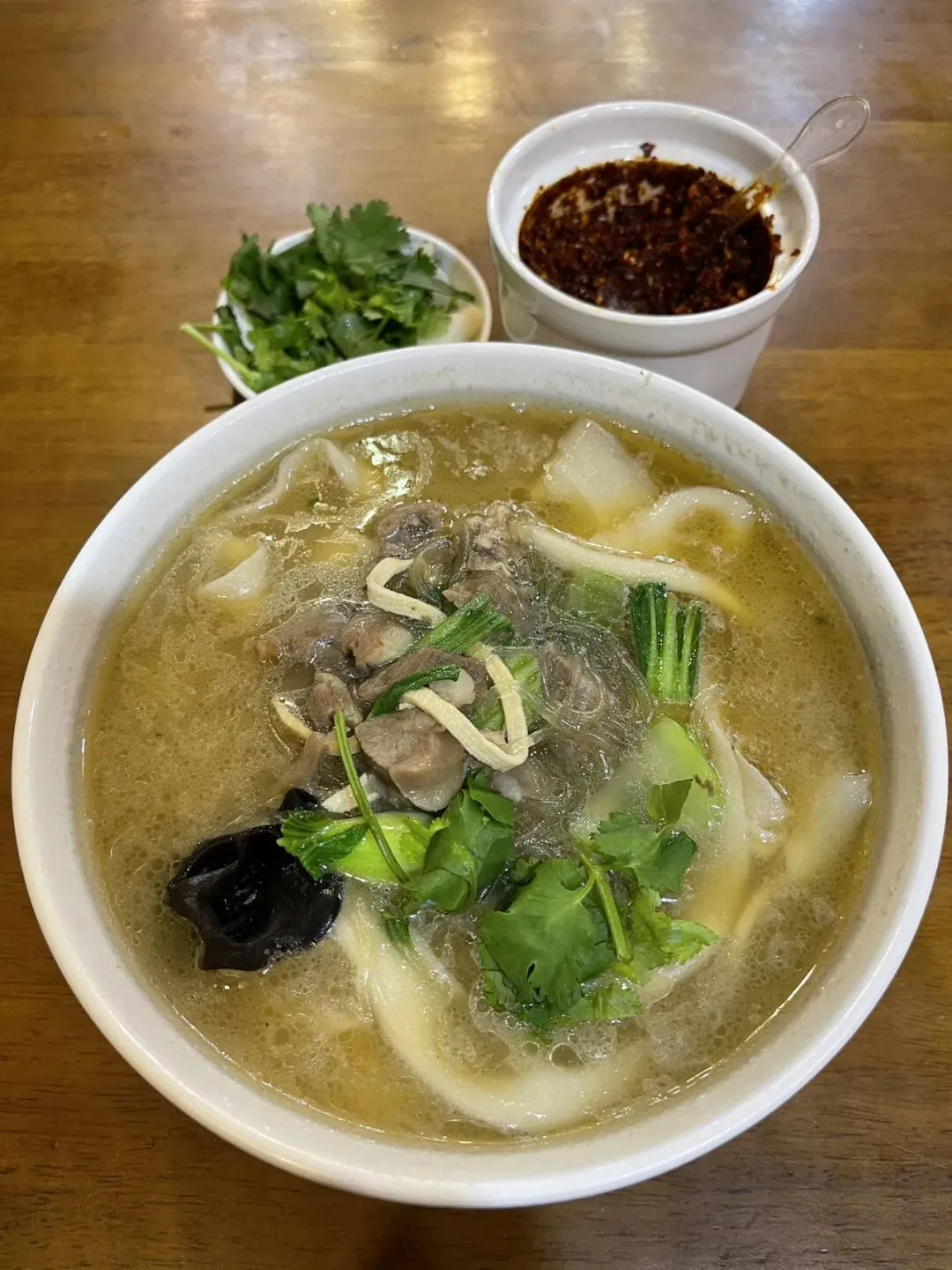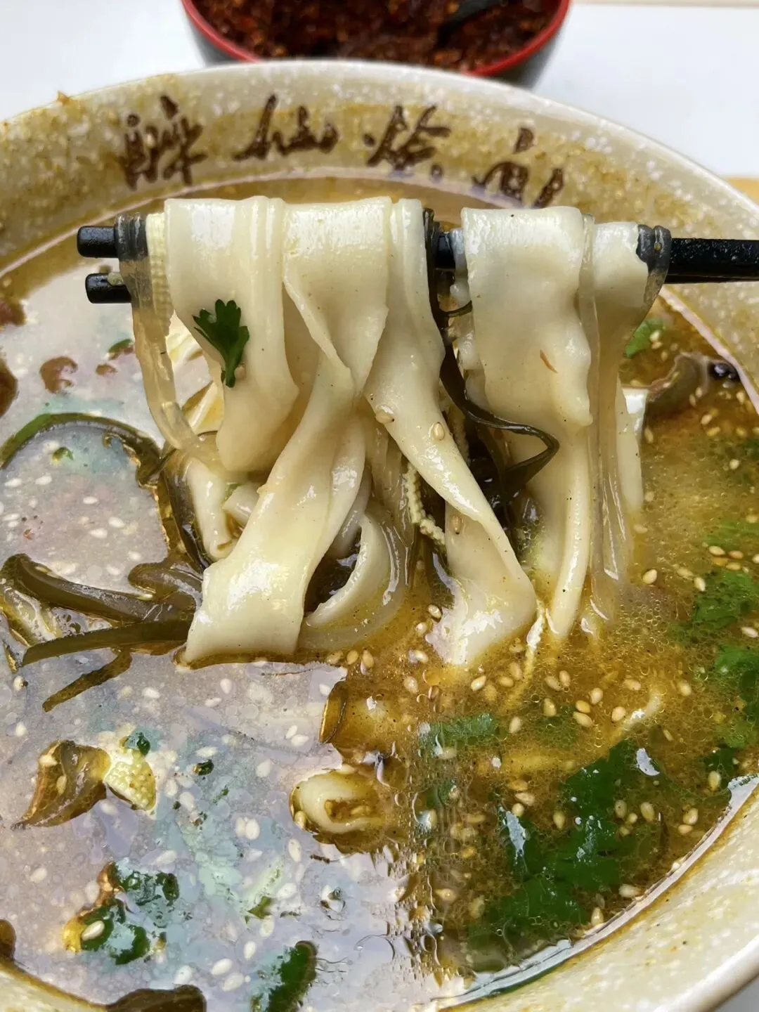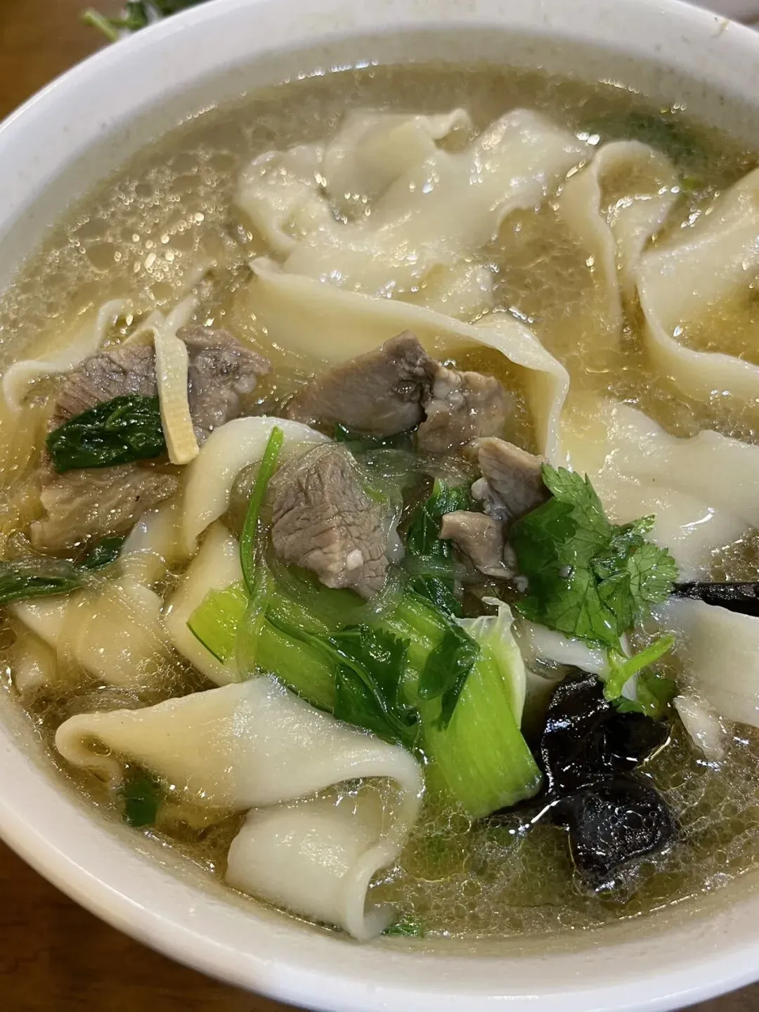 三鲜烩面以萧记为代表,汤里加入海参、鱿鱼(或广肚),不加羊肉,适合喜欢海鲜风味,想尝试非羊肉口味的人。砍柴书生吃过萧记三鲜烩面,觉得还是浓郁的羊肉烩面更好吃。