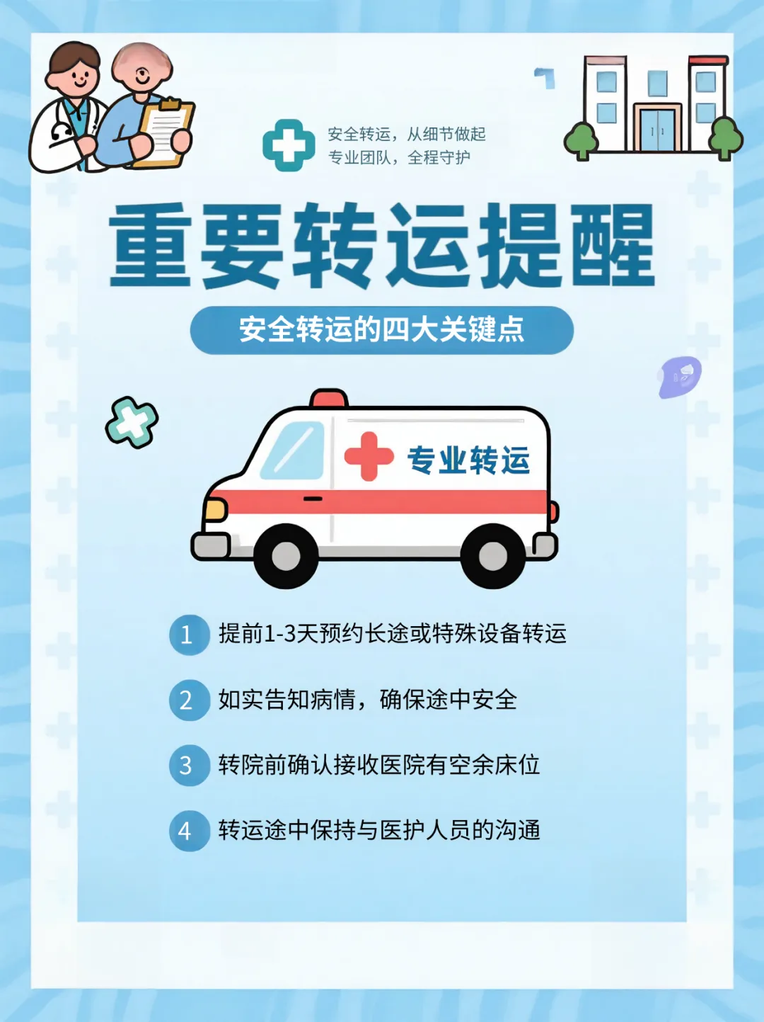 康顺转运专注于非急救120医疗转运服务,专业承接各类救护车转运需求。无论是长途跨省转运,还是本地护送,我们都能为新生儿、骨折、重症、危重症患者以及行动不便者提供安全可靠的出行保障。24小时服务:158 0023 2407(←长按复制,电话或微信免费咨询)