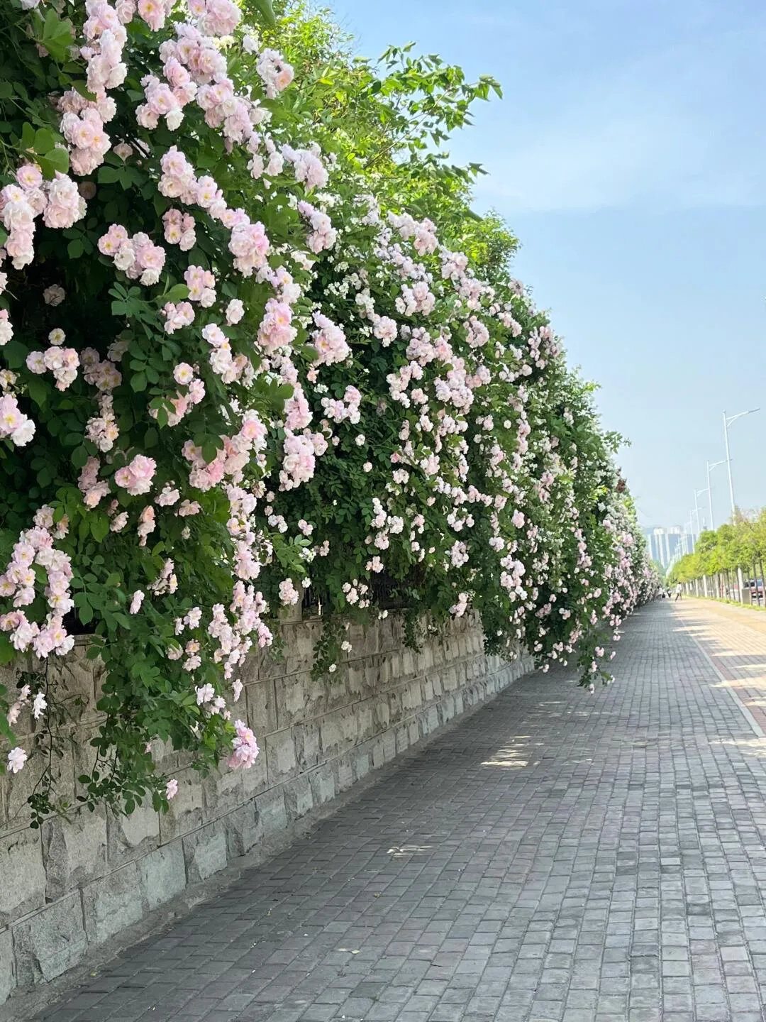郑州最美街道实锤!每到春天,整条街的蔷薇花爬满围墙,形成一面绝美的蔷薇花墙粉的、白的蔷薇竞相绽放,花香浓郁,走在街头,随手一拍都是温柔感大片,女生来这里拍照,随便摆姿势都好看。
