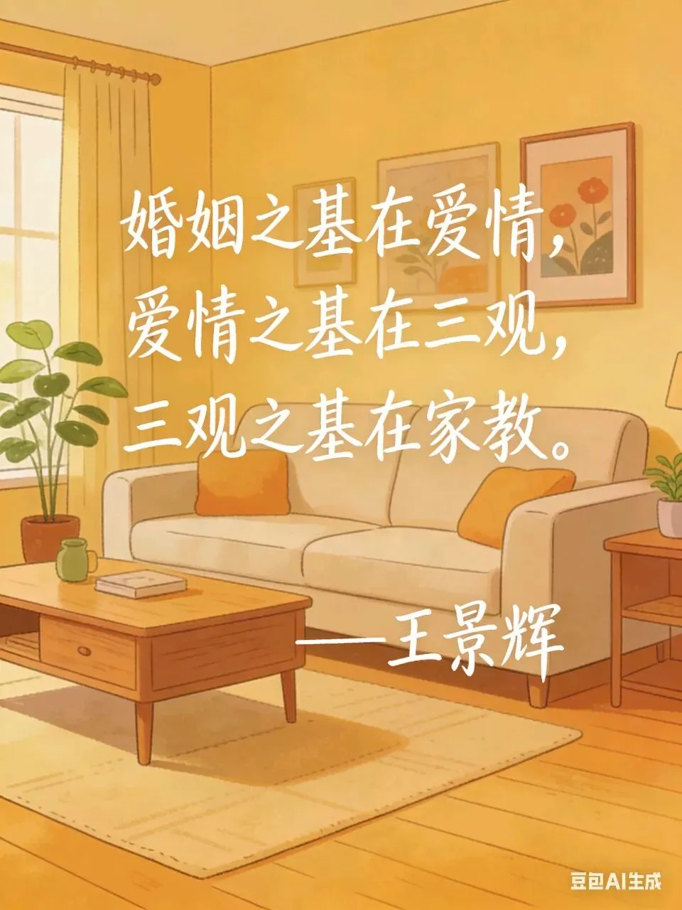 - 婚姻之基在爱情,爱情之基在三观,三观之基在家教。——王景辉