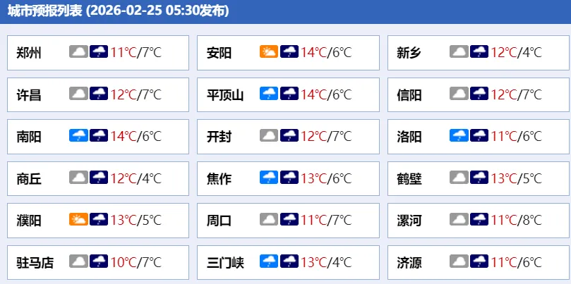 ⭐受低槽东移影响,2月25日,河南全省有小雨,其中西部、南部局部有中雨;26日南部有小雨。详情>>
