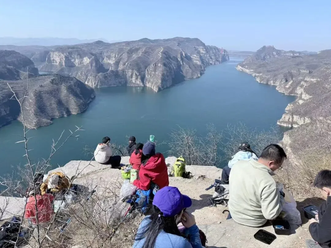 济源黄河三峡,是黄河中下游最壮美的一段,被称作中原第一山河画廊。这里一改黄河 “浊浪滔天” 的印象,高峡出平湖,碧水绕青山,既有太行的雄浑,又有江南的灵秀。清晨从郑州出发,驱车 2 小时抵达济源下冶镇陶山村两岸峰峦酷似龙凤相拥,山水相依,既有北方山水的雄浑,又不失江南的温婉。观景台是绝佳出片点,无需刻意构图,随手定格都是 “船在水中行,人在画中游” 的意境。途经孤山峡,黄河如巨龙穿峡而过,水面游船缓缓驶过,漾开圈圈涟漪。站在半山腰步道横切,脚下是平湖,眼前是群山,一步一景,每一次转身都能遇见不同的山河画卷。大年初四.或者假期想避开人群,我们选择一些小众的徒步线路,休闲线-陶山村→坡池村观景台→龙凤峡→玄天洞→陶山村(约 12 公里,爬升 350 米,4–5 小时,新手 / 亲子友好)装备必备
