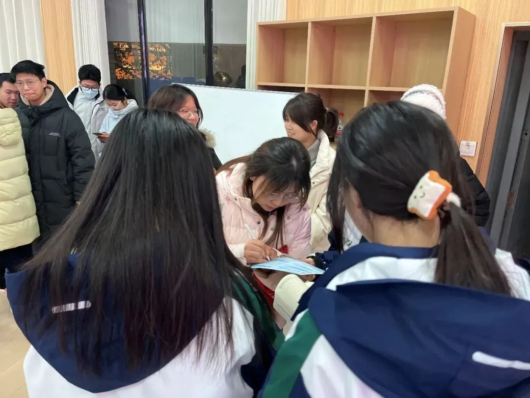 2月4日,我们来到母校上蔡一高的讲台,从倾听者变成了讲述者。为了让郑大不再是一个遥远的名词,我们将校园里银杏、食堂、图书馆的生动画面做成PPT,让学弟学妹们更好地了解郑州大学。答疑时,面对那些关于“物理数学时间分配”“大学是否自由”的熟悉焦虑,我们分享的更多是走弯路的心得。当亲手刻制的书法书签带着墨香传递,一枚小小的印章,将一所大学的名字变成了可触摸的温度。灯火通明的教学楼里,我们仿佛在用一段真实的成长,告诉当年的自己:前路可期,而传承,就发生在这一束光点亮另一束光的刹那之间。