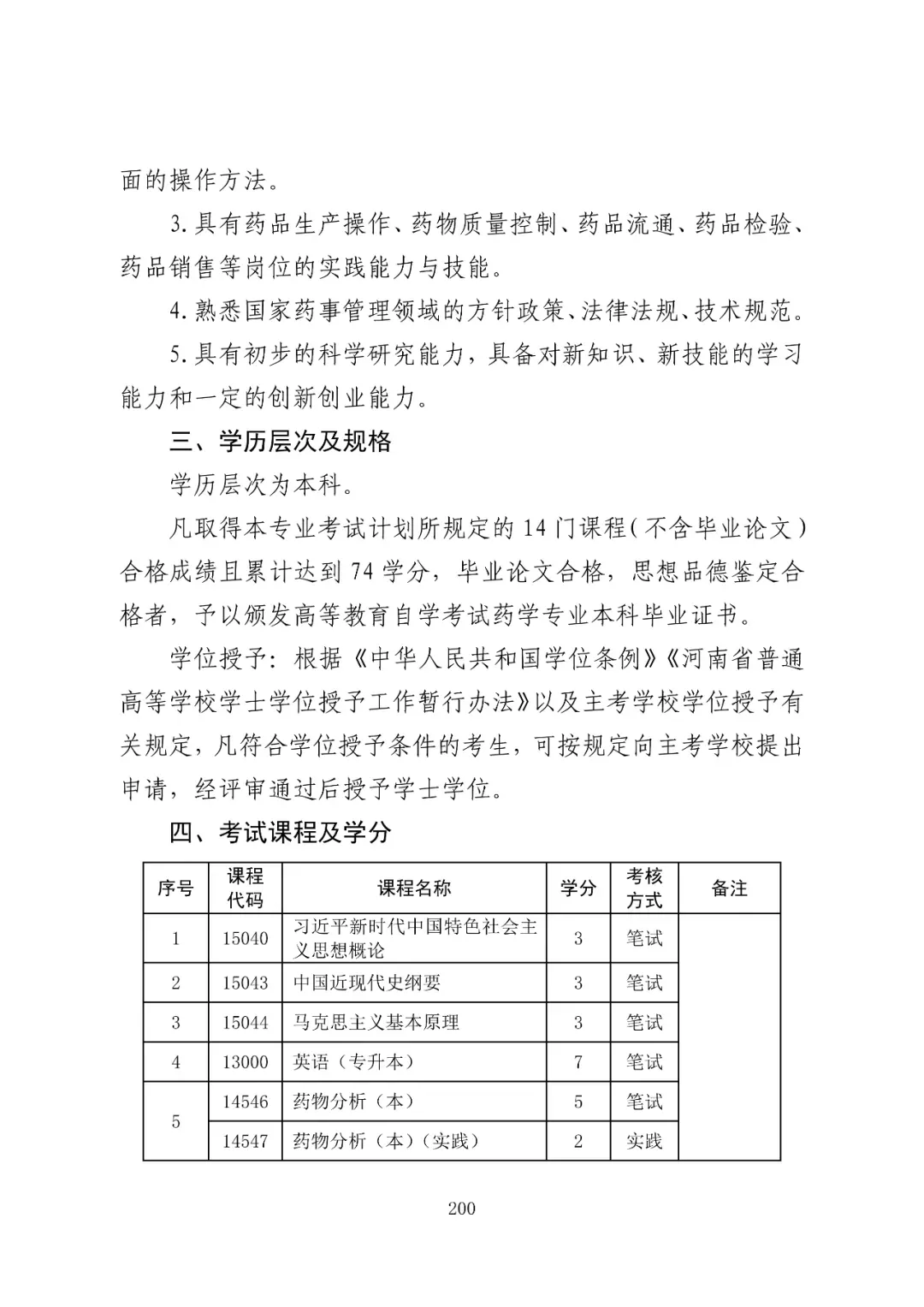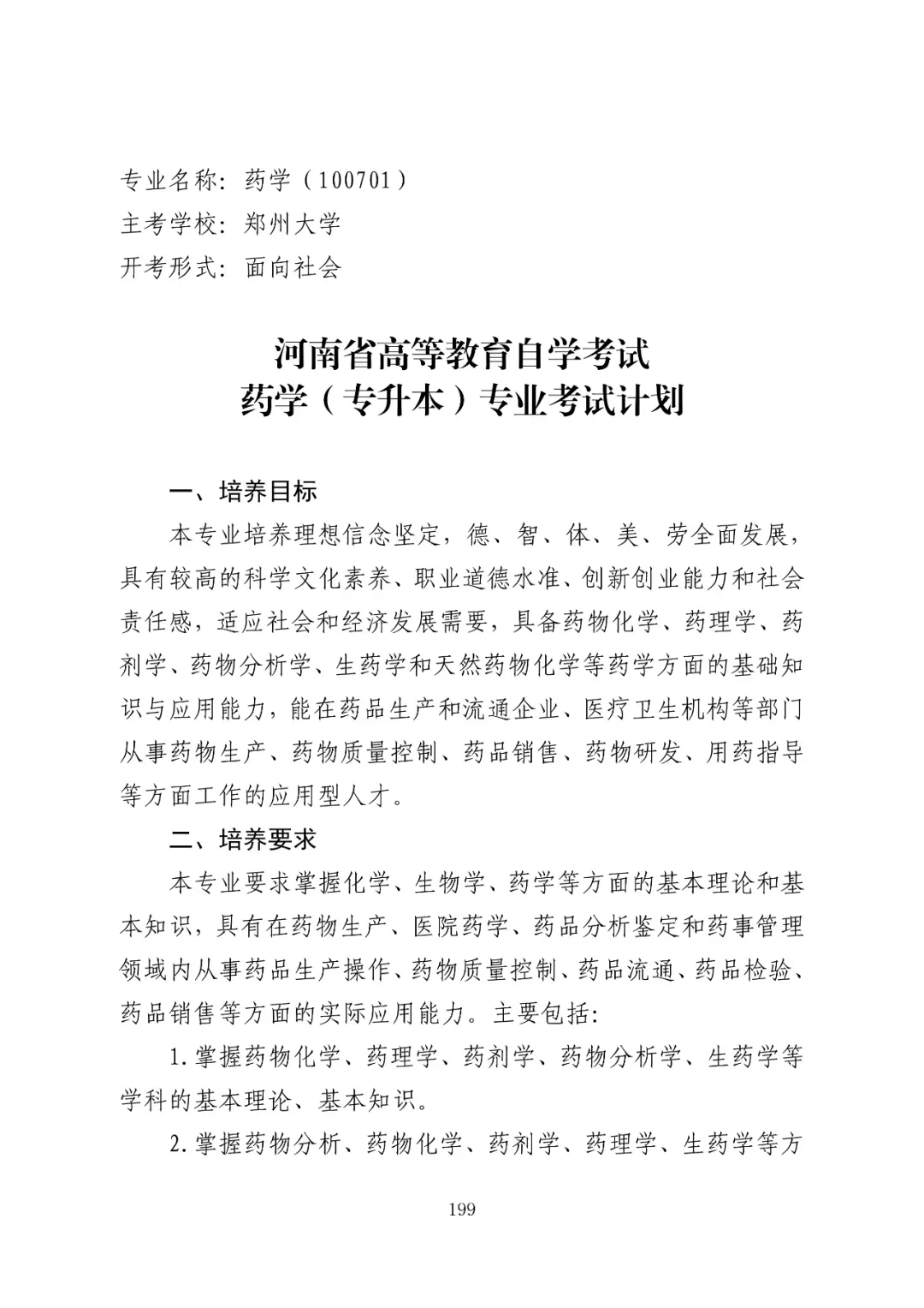 2026 年郑州大学自考100701药学本科专业最新课程计划