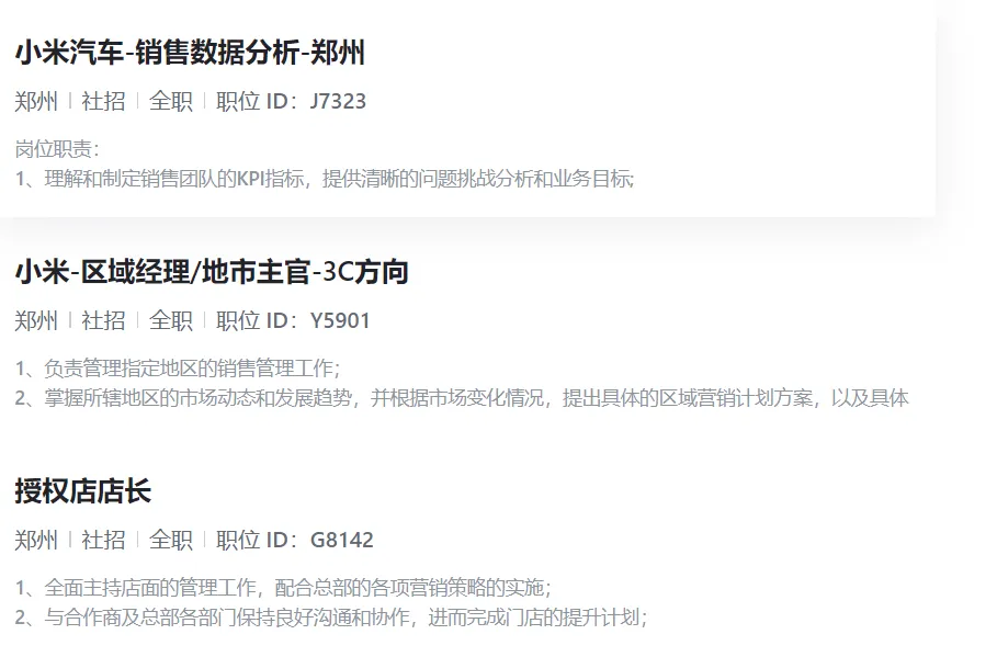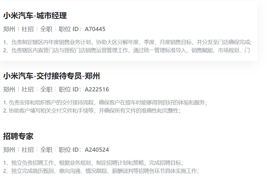小米汽车郑州招聘
