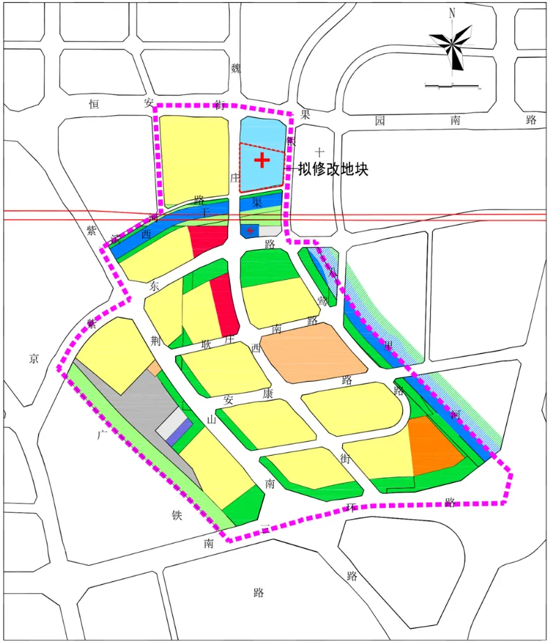 修改的范围就是管城区内滨河路、魏庄西街、恒安街和银鹰路合围的区域,其中就涉及到了医疗卫生用地。