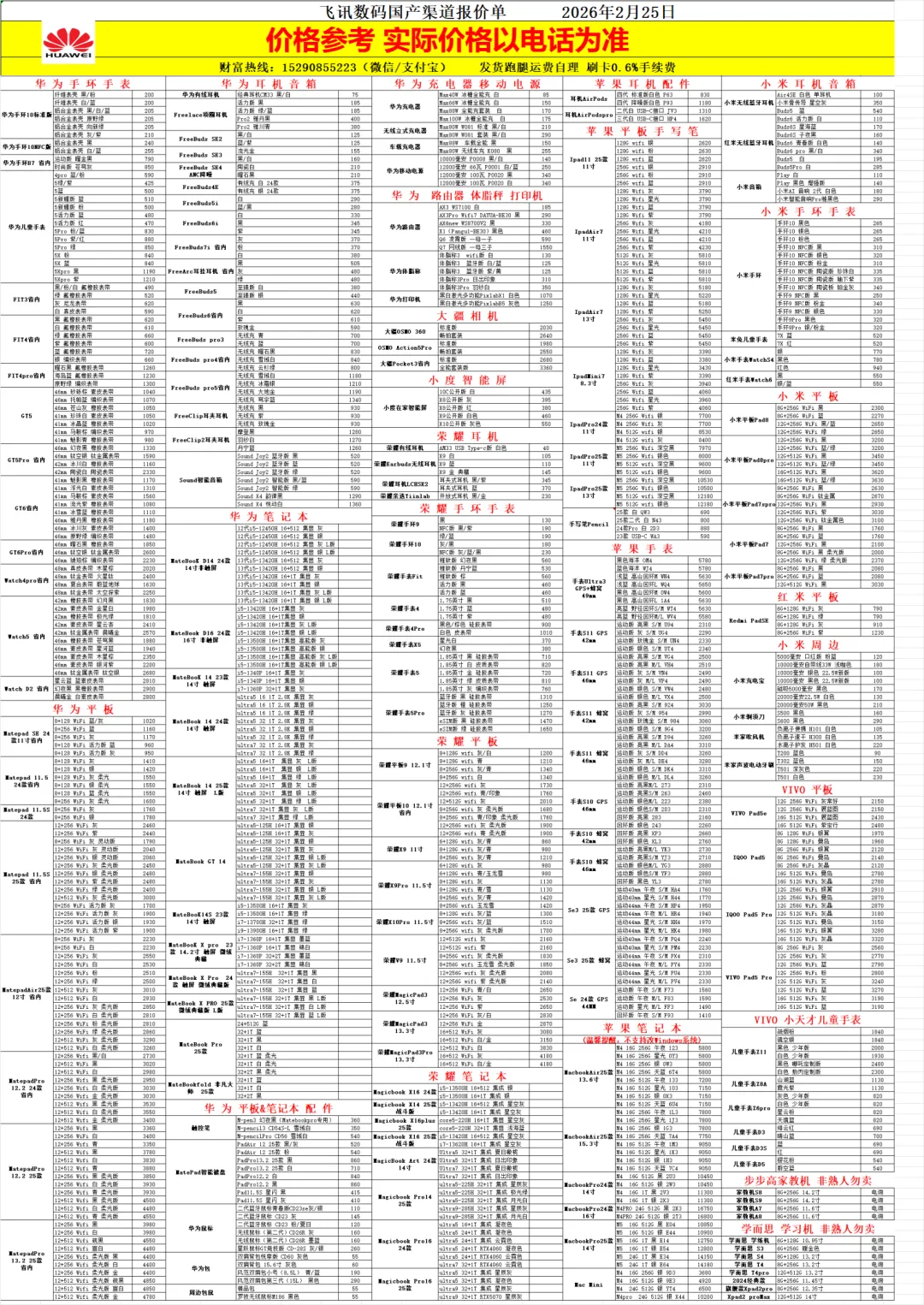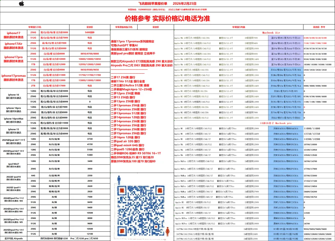 2026年2月25日渠道报价单 关注公众号查看每日报价
