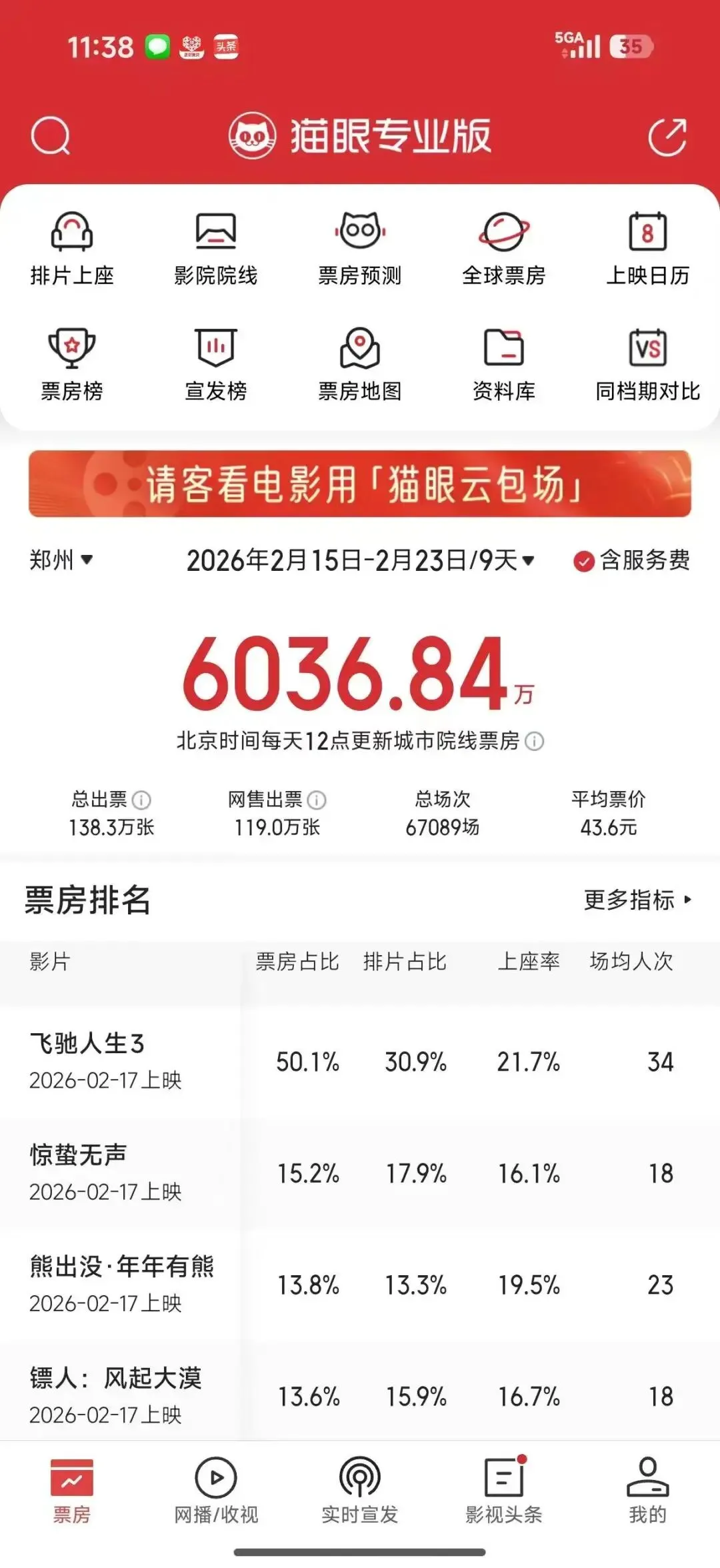 档期内,郑州全市电影排片共计6.7万场,吸引138.3万人次走进影院。其中,大年初一(2月17日)单日观影人次达30.5万,票房冲高至1406.6万元,实现新春观影市场的开门红。