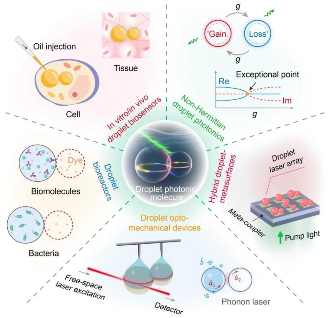 该研究首次将光子分子概念拓展至液体体系,融合了液滴的柔性可重构与光子分子的单模选模优势,解决了传统液滴微激光器的核心技术瓶颈。其构建的 LPM 微激光平台不仅为超灵敏生物传感提供了新方法,还可与微流控技术结合实现高通量生物分析,同时为非厄米光子学、腔光力学、液滴 - 超表面杂化系统等基础物理研究开辟了新方向,在临床诊断、生物标志物检测、单细胞分析等领域具有重要的应用前景。