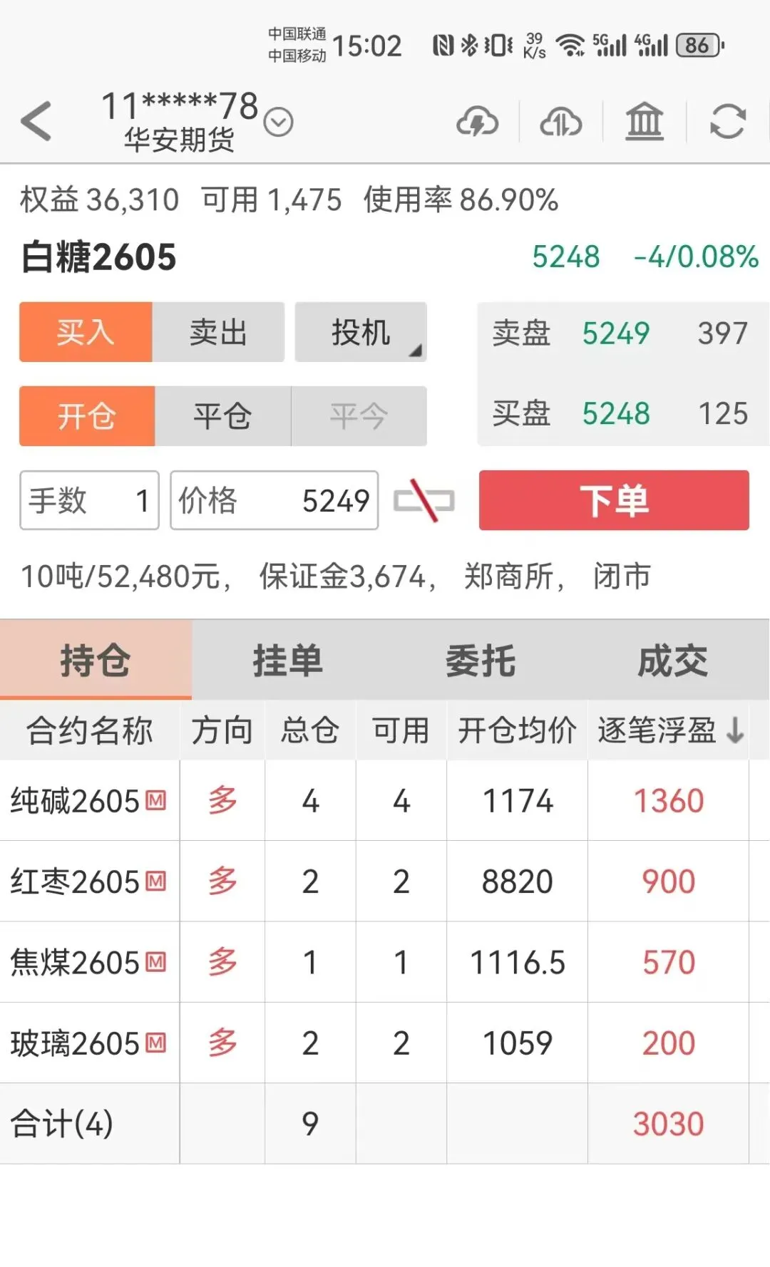 今日下午3点收盘个人账户持仓和当日交易报告:
