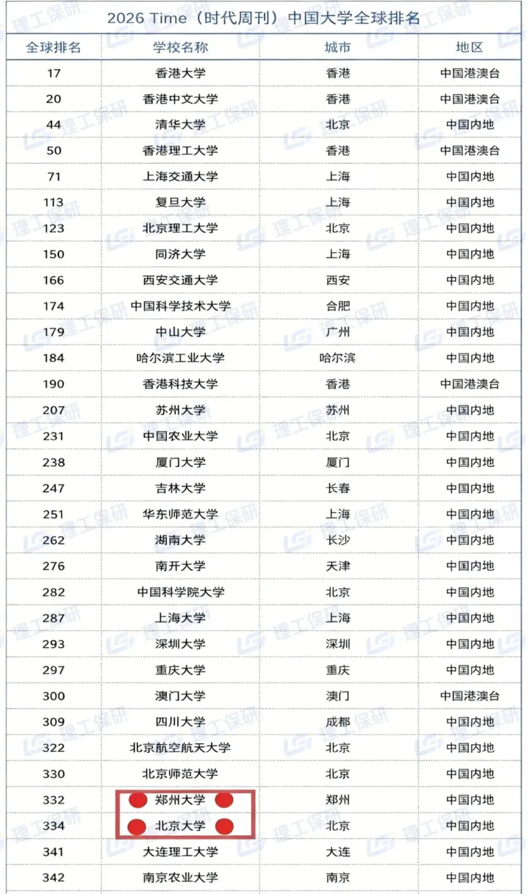 郑州大学排名全球第332位、内地第24位,位次排在北大之前。(实不止郑大,该榜碾压北大的学校有点多哇…)