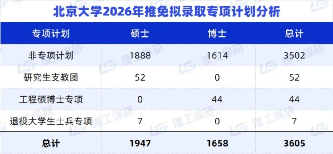 北京大学2026届推免研究生(含硕士、直博生)拟录取总人数为3605人,其中拟录取推免硕士研究生1947人,占总人数的54.01%;拟录取推免直博生1658人,占总人数的45.99%。