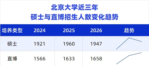 三年来北京大学接收推免生的招生规模整体呈现逐年增长的趋势,2024届拟录取3487人,2025届的拟录取人数3593人,2026届拟录取3605人,拟录取硕士及直博人数均有所增长,继续保持扩招趋势。