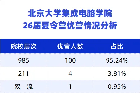 集成电路学院最终推免拟录取93人,直博生80人,硕士生13人。其中夏令营入围门槛较高,入围同学主要为985前几名和少数211同学。985优营人数100人,占比95.24%,211优营人数4人,双一流1人。