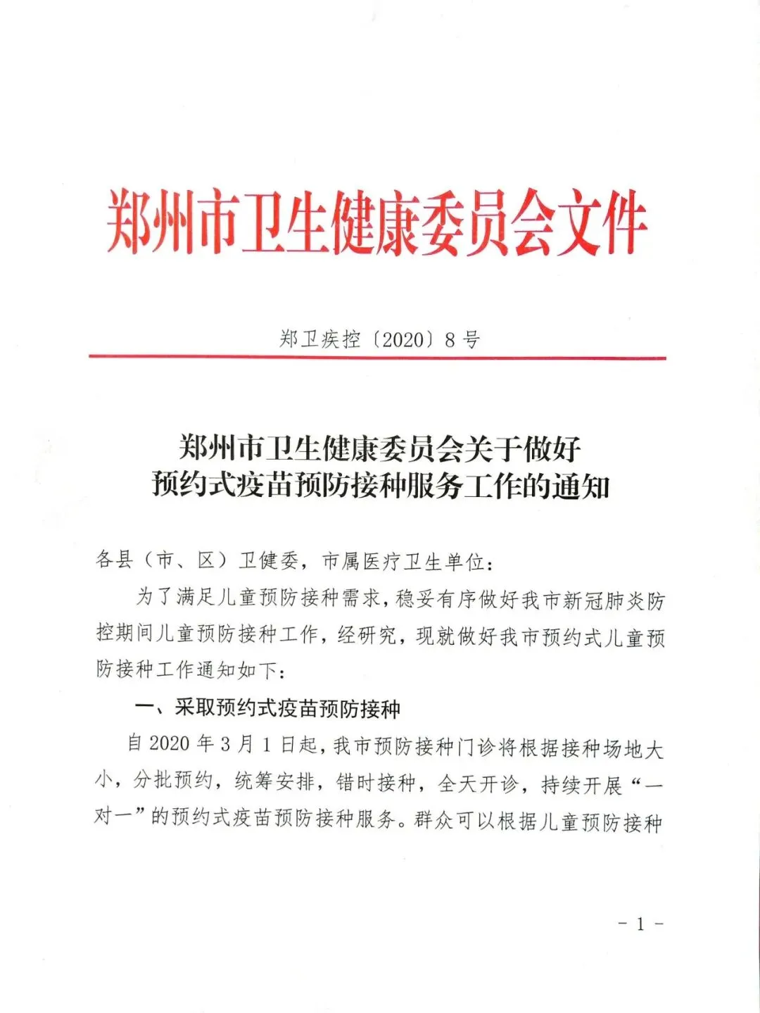 【疫情期间开启预约式疫苗接种服务工作】的通知,