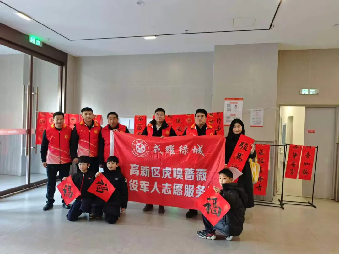 2月11日,“戎耀绿城”高新区虎嗅蔷薇退役军人志愿服务队联合郑州城建集团建设板块党支部,走进国基美寓项目开展写春联、送祝福活动,以笔墨丹青传递新春暖意,用军人情怀书写为民初心,为项目建设者送去浓浓年味与真挚关怀。