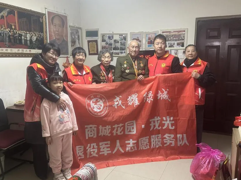 2月6日,“戎耀绿城”管城区商城花园・戎光退役军人志愿服务队开展春节走访慰问及红色教育活动,为老兵送去温暖关怀,并通过沉浸式红色教育激发爱党爱国热情。