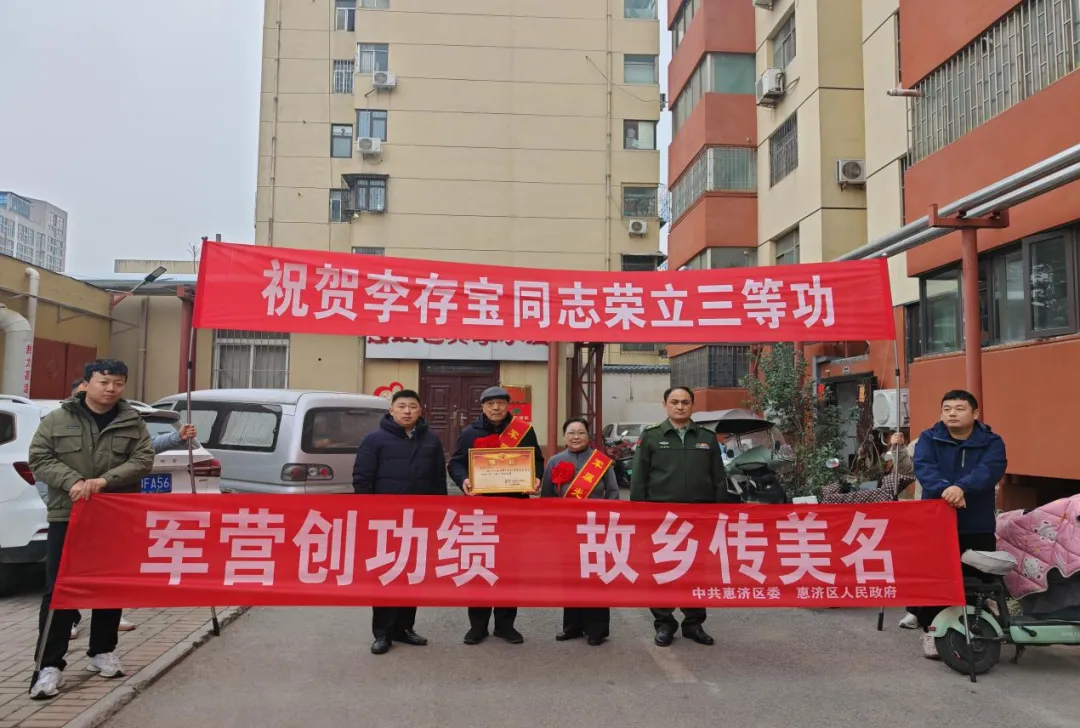 2月10日,金水区退役军人服务中心联合国基路街道退役军人服务站,开展现役军人立功送喜报活动,将党和政府的关怀以及沉甸甸的荣誉,精准送到军人家庭手中,让军人军属真切感受荣光与温暖,进一步激发广大官兵矢志强军、共筑国防的强大力量。