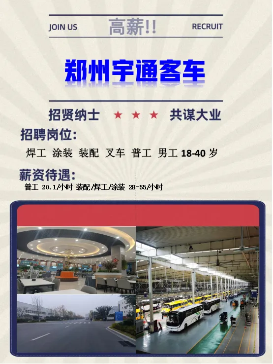当前位置:首页>郑州>【2.24-工厂招聘】郑州宇通客车/上汽乘用车/延锋座椅/三全食品/振华君润/比亚迪/安图生物