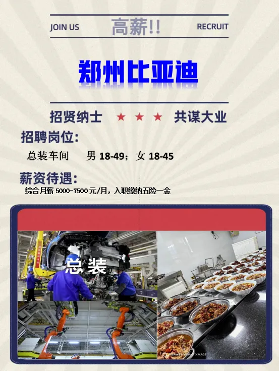 【2.24-工厂招聘】郑州宇通客车/上汽乘用车/延锋座椅/三全食品/振华君润/比亚迪/安图生物