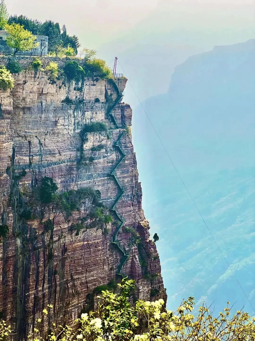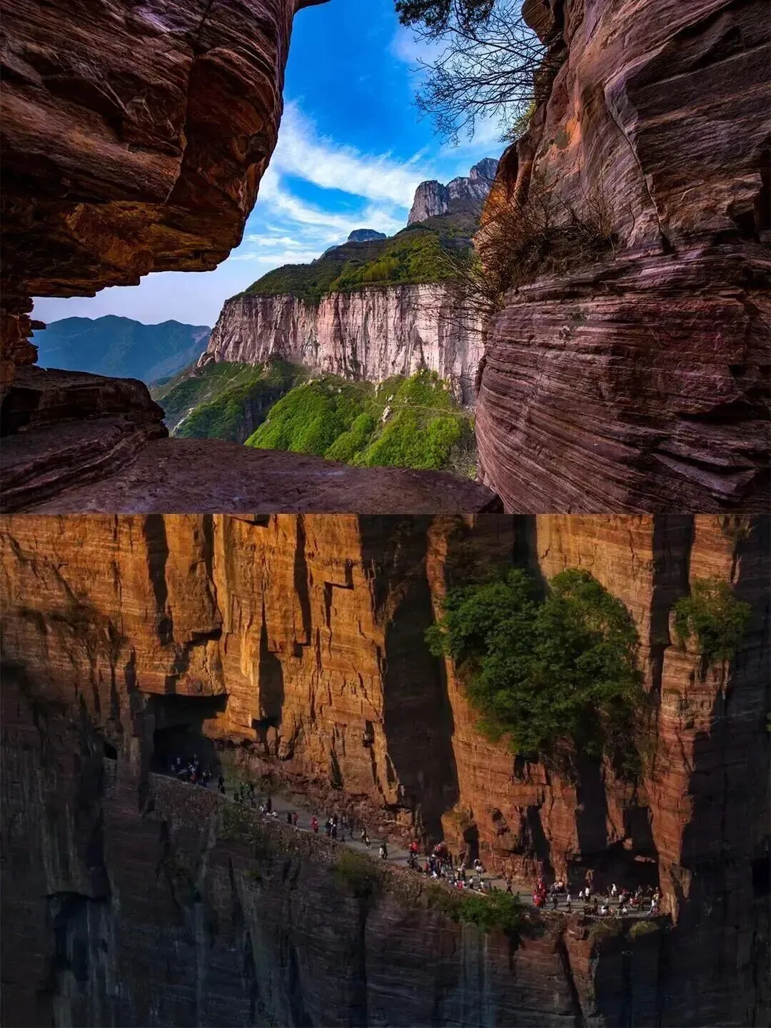 锡崖沟挂壁公路:四面绝壁围合的封闭型盆地,地质学称为“地堑式峡谷”。沟内梯田层叠,与红色嶂石岩构成“太行山最壮观的农耕画卷”。小灵山天梯,位于南太行九莲山关后大峡谷,极具挑战和观赏性。天梯呈Z字型建于山体之上,远看非常壮观。天梯分为两段,一部分为铁梯,一部分为石梯,极度恐高小伙伴可以选择在山顶观景台游玩~【活动时间】:4月3日-4月6日
