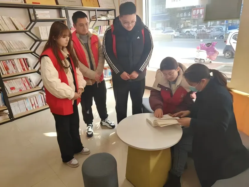 团队成员还开展了“一对一”理论辅导与政策讲解,放慢语速、耐心解读,确保每一位居民都能听得懂、记得住、有共鸣。与此同时,队员们主动参与社区文化建设,协助整理社区图书室,将国学经典、红色读物、科普书籍分类摆放、精心整理,为居民营造更加舒适便捷的阅读环境。大家还策划开展经典诵读、文化知识分享等活动,让中华优秀传统文化在社区落地生根、焕发新的生机。