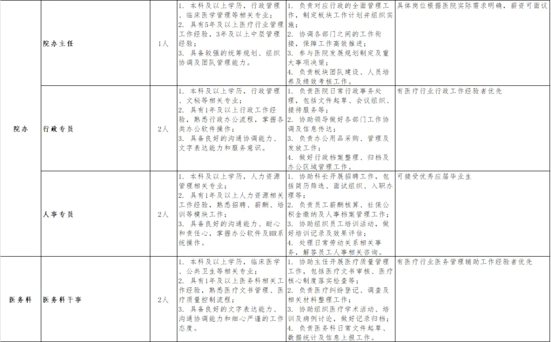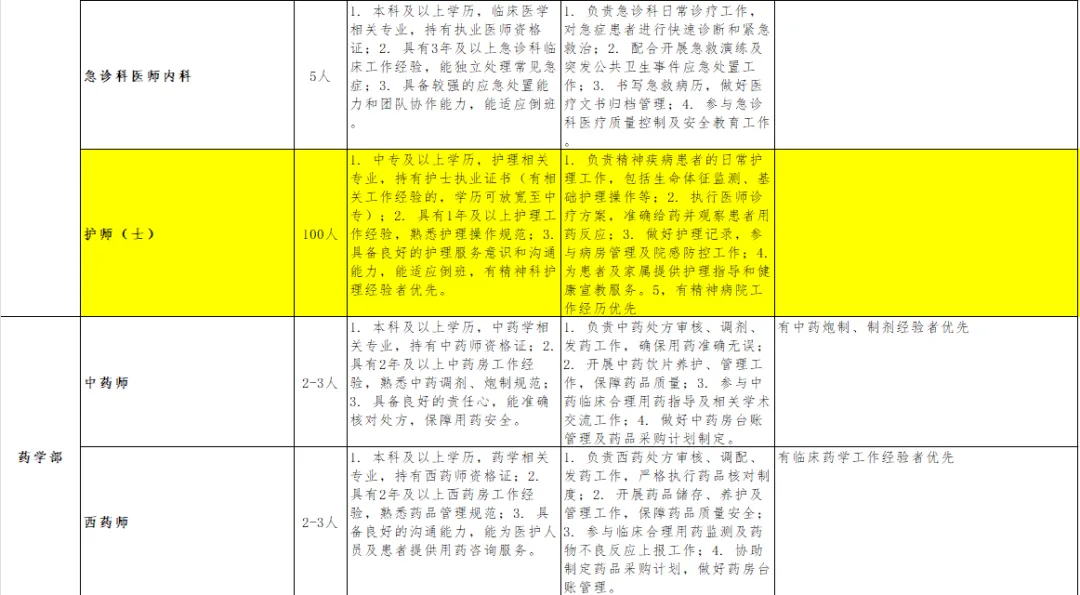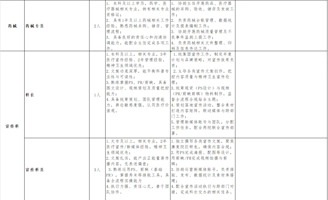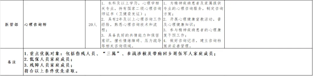 - 招聘原则:坚持德才兼备、公平公正、人岗匹配的原则,择优录用符合岗位要求的专业人才,重点保障精神科、康复科等核心业务岗位人才供给。